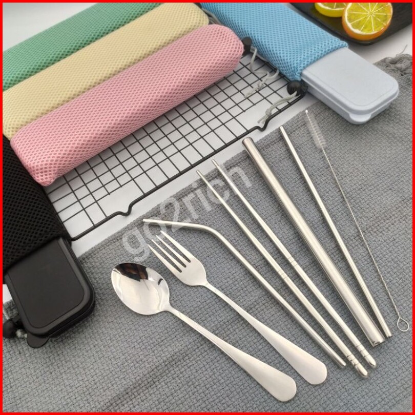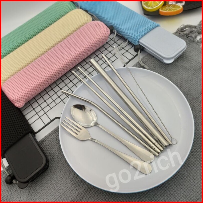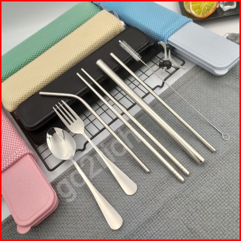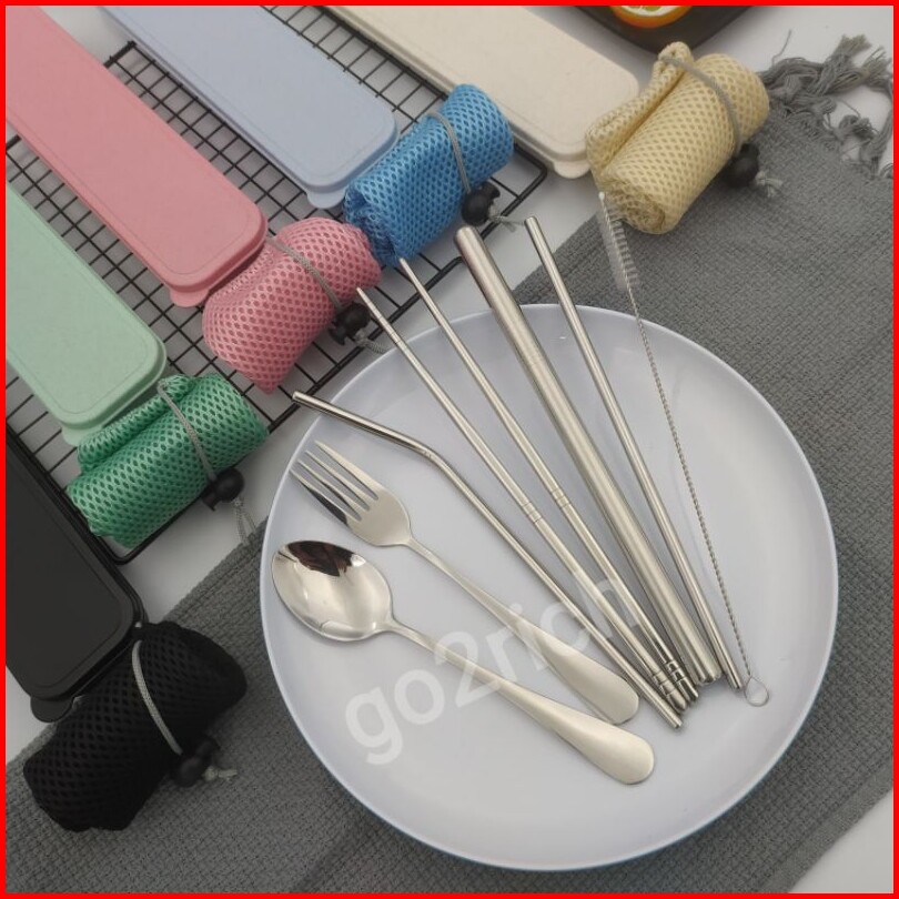 Sendok Makan Stainless Steel Set Garpu Sumpit Sedotan Tebal