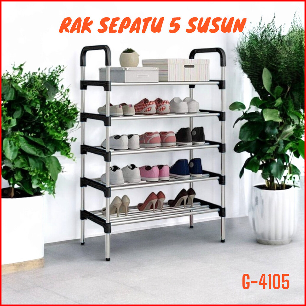Rak Sepatu Sandal Susun Serbaguna 5 Tingkat 4 Susun Plastik Stainless Steel Gsf 4105 Gsf 4304 Gsf 4105 Gsf 5504 Axlo 915