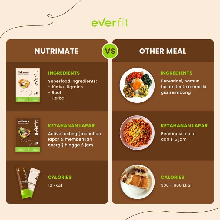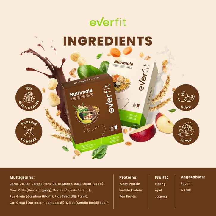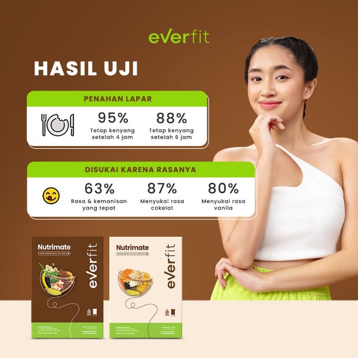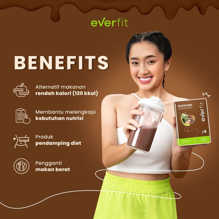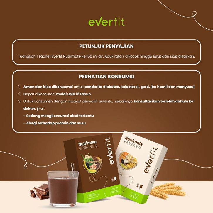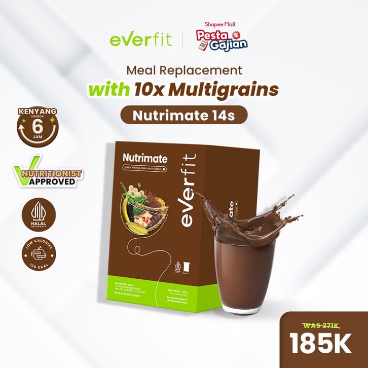 Everfit Nutrimate Meal Replacement dengan Oat Isi 14 Sachet Rasa Cokelat dan Vanila
