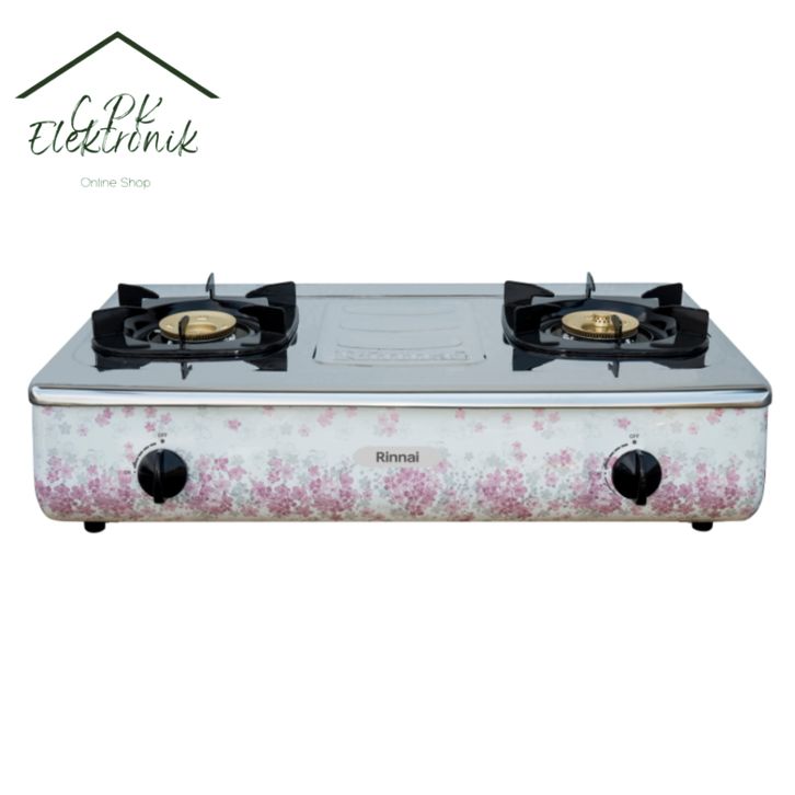 Kompor Gas Rinnai RI 712AF 2 Tungku Motif Sakura Stainless Steel