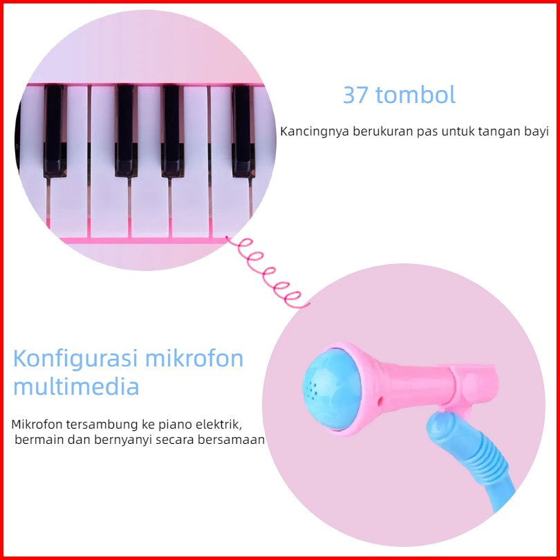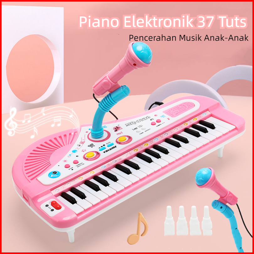 Mainan Piano Mic Keyboard Elektronik 37 Kunc Piano Mini Dengan Mikrofon Anak Alat Musik Edukasi Anak