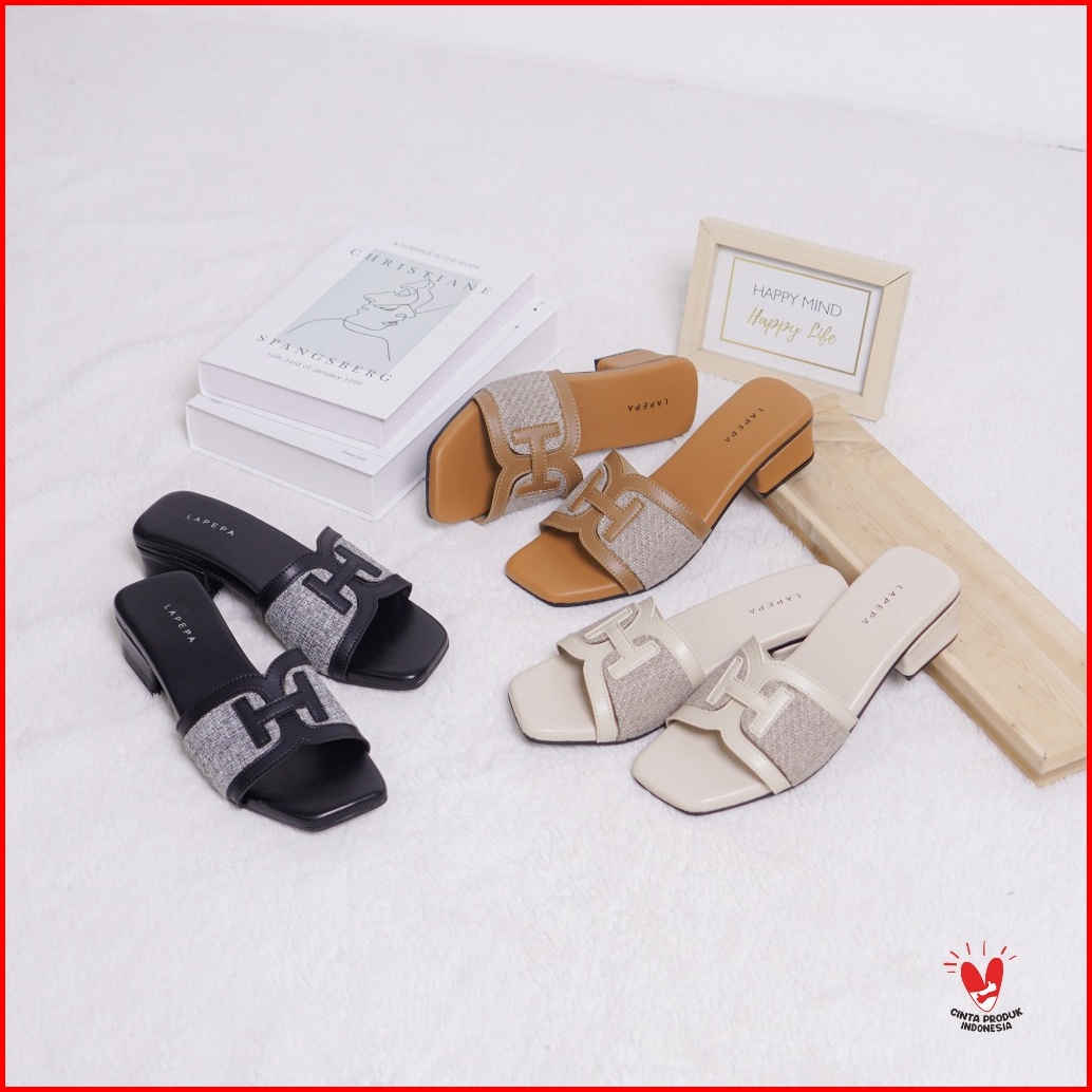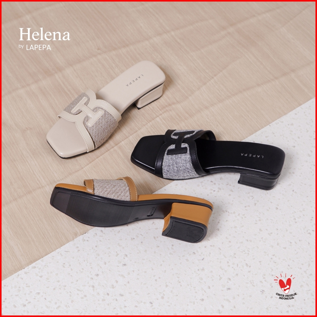 Lapepa - Helena Sandal Heals Wanita Sendal Hak Tahu Selop Cewek Slip On Kekinian