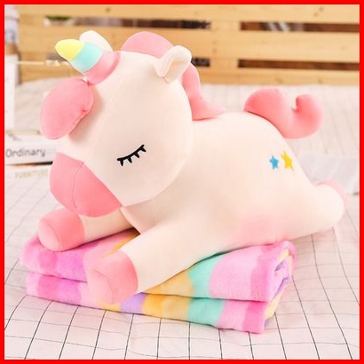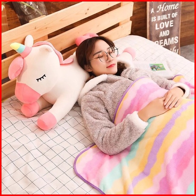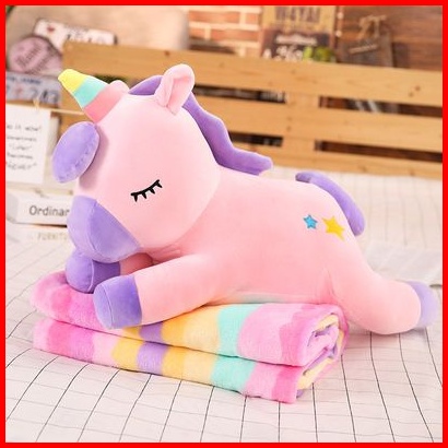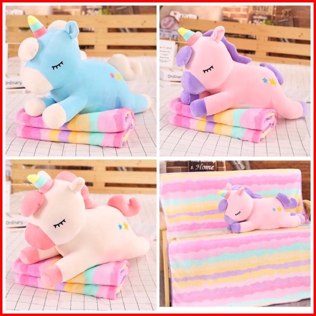 Ntl B008 Boneka Bantal Selimut Unicorn Selimut Pelangi Balmut Unicorn