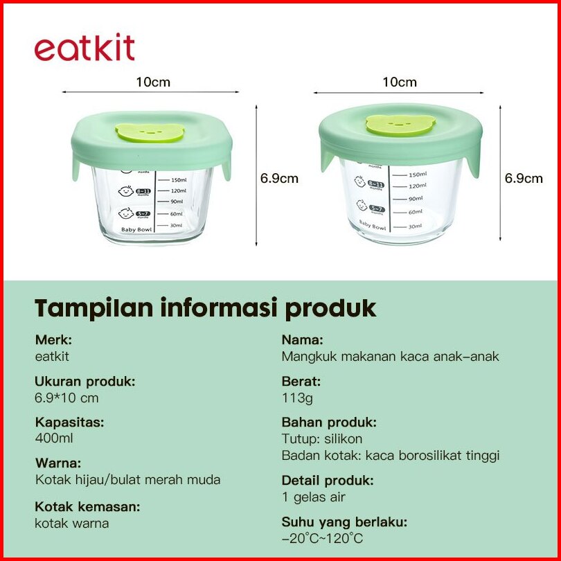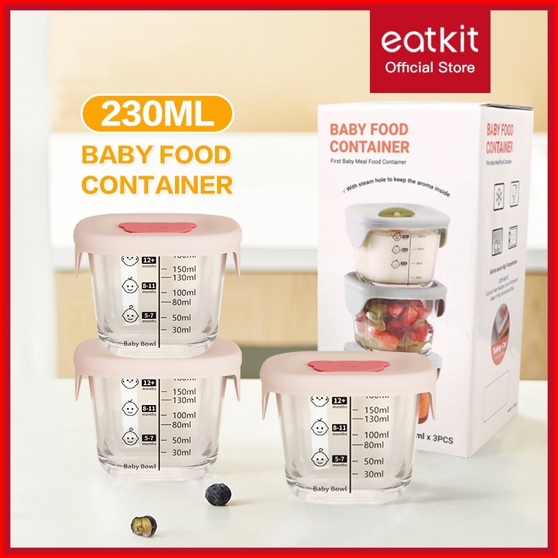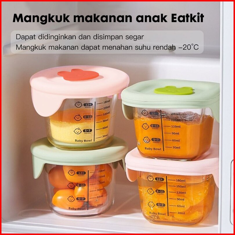 Eatkit Food Container Baby Mpasi Kaca 3pcs 230ml Tempat Mpasi Kaca Mangkuk Makan Bayi