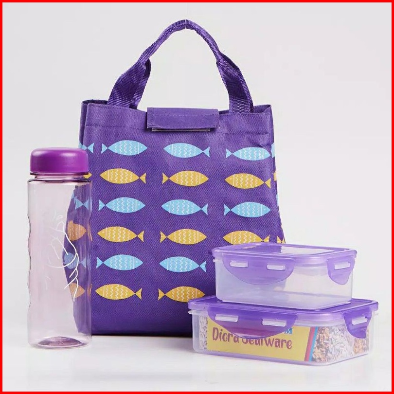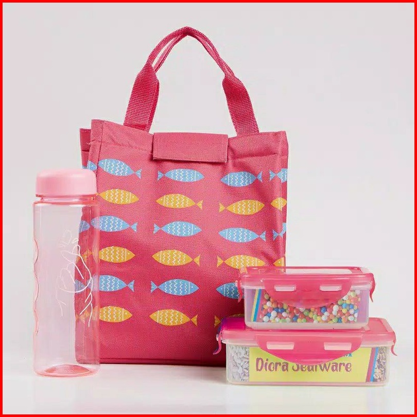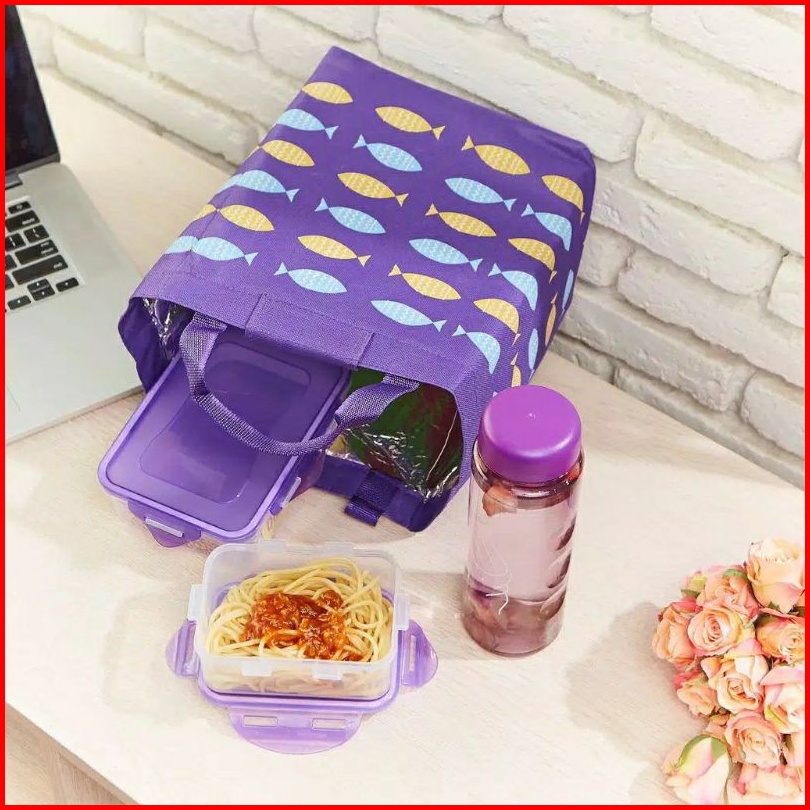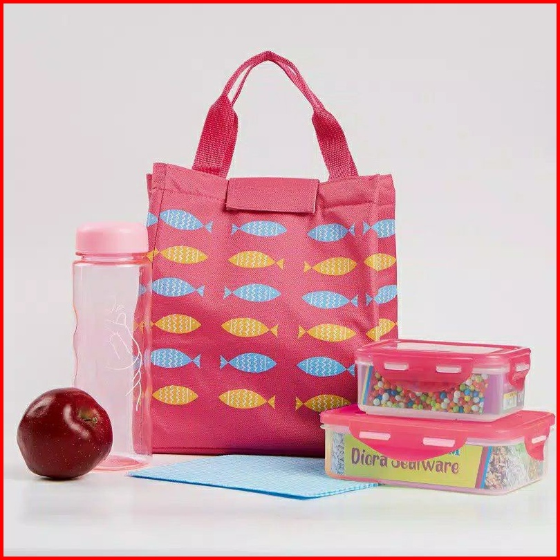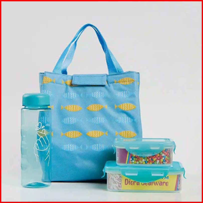 Tas Bekal Makan Yoshi Motif Ikan Set 4 Pcs Kotak Makan Yoshi Fish Version Lunch Bag Berkualitas