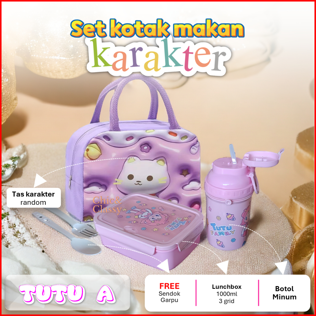 Tutu Series A Kotak Makan Lunch Box Botol Minum Tas Bekal Sendok Garpu Bekal Anak Sekolah