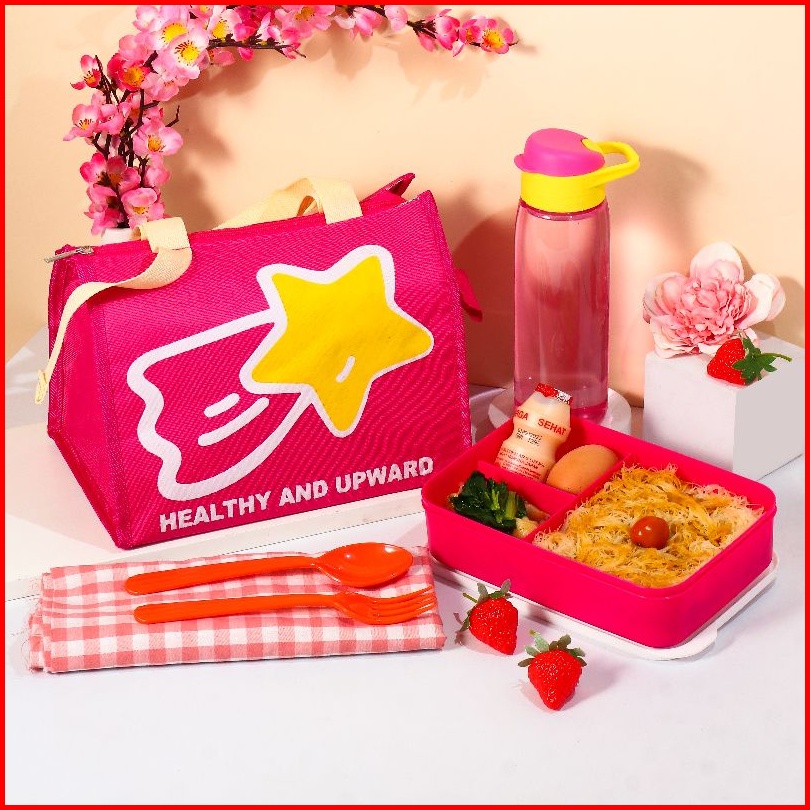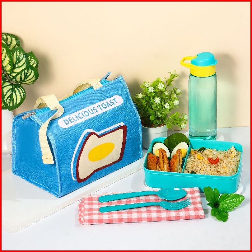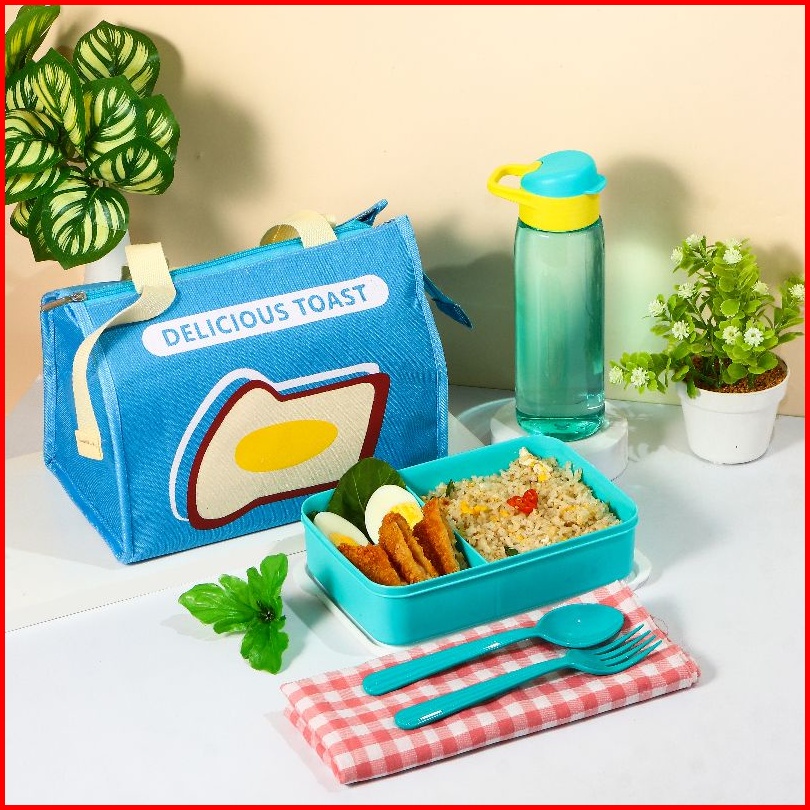 Tas Bekal Cooler Bag Lunchbox Set Botol Sendok Garpu