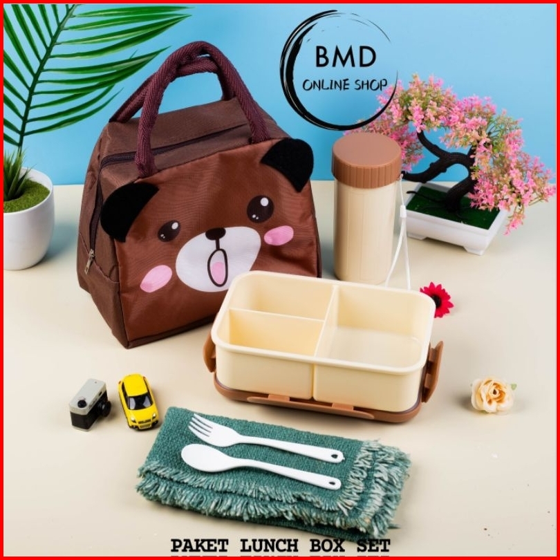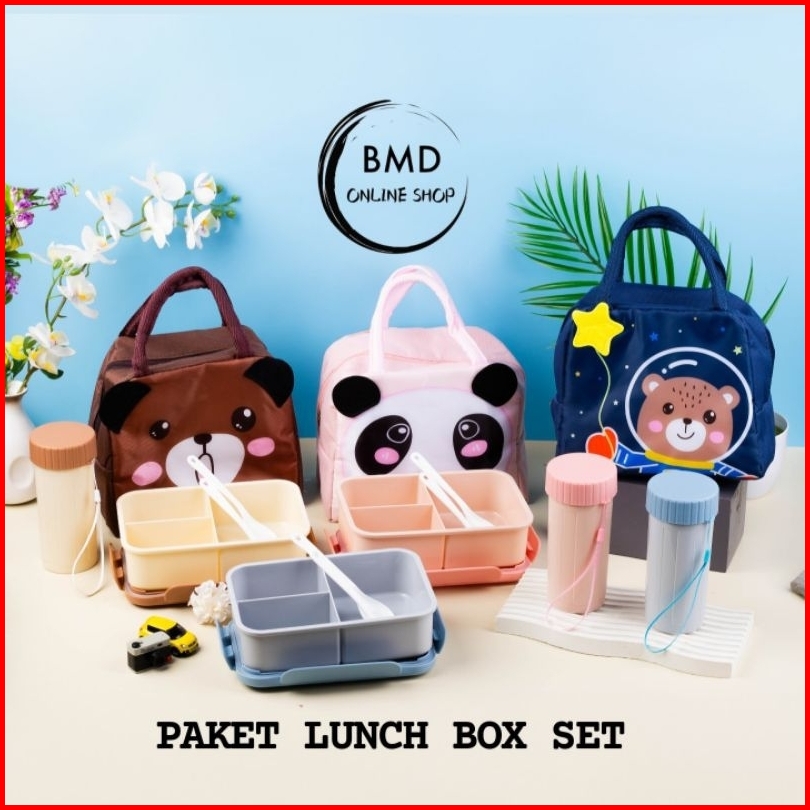 Kotak Makan Set Botol Minum Tas Bekal 3in1 Lunch Box Botol Minum Tas Bekal
