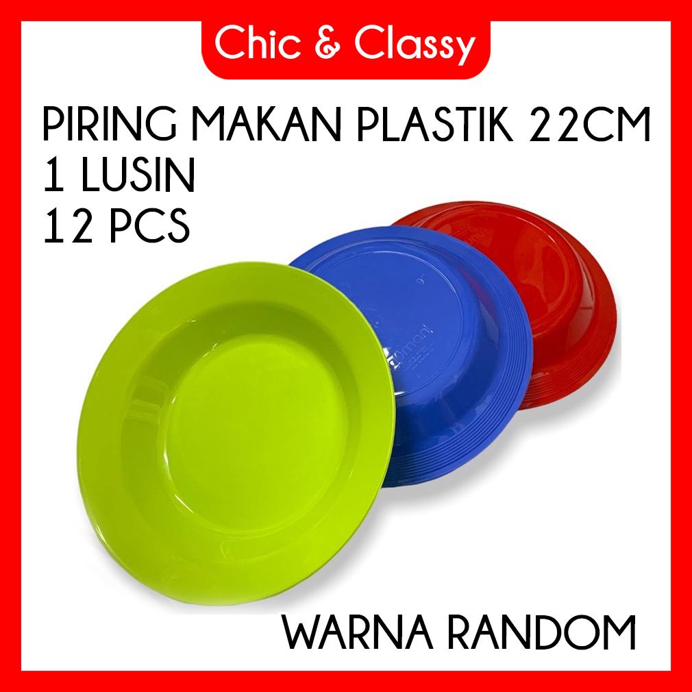 12 Pcs 1 Lusin Piring Plastik 22 Cm Piring Makan