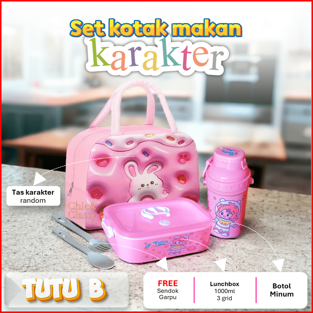 Tutu Series B Kotak Makan Lunch Box Botol Minum Tas Bekal Sendok Garpu Bekal Anak Sekolah