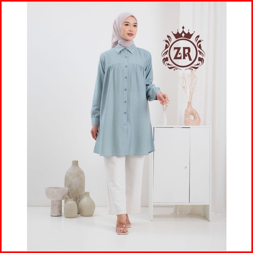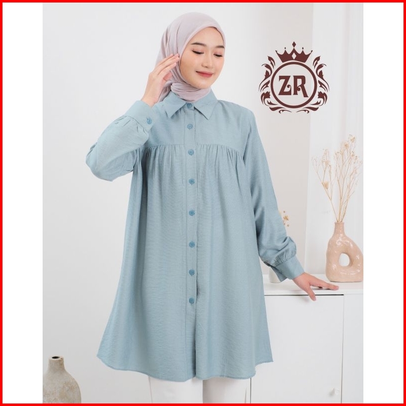 Zarra Tunik Polo Linen Kancing Belakang Busui