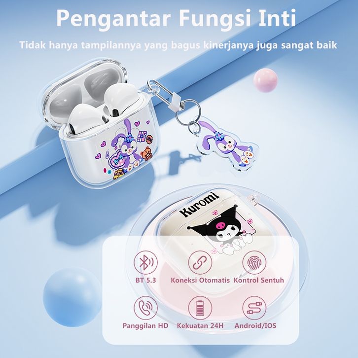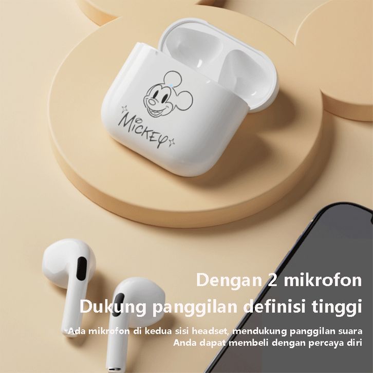 Disney TWS Headset Bluetooth 5.3 Earphone Lucu iPhone Android Ori Mini Wireless Pro4 HIFI Musik Dengan Mikrofon