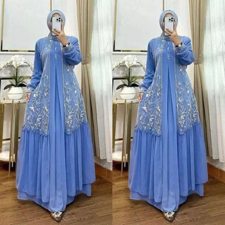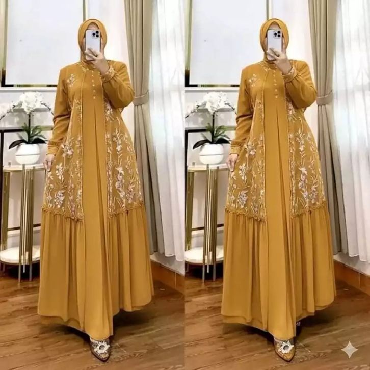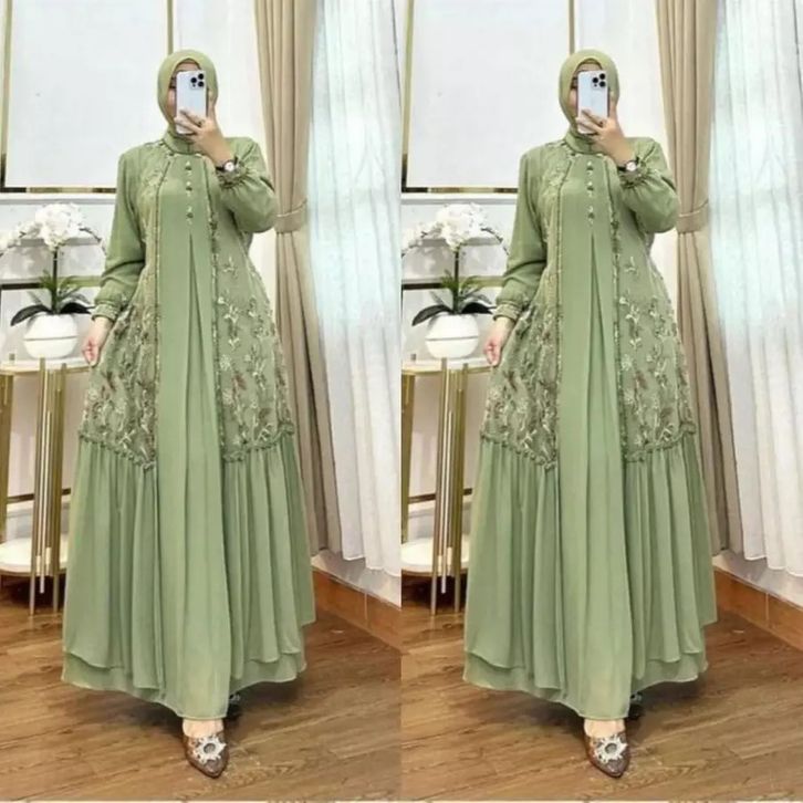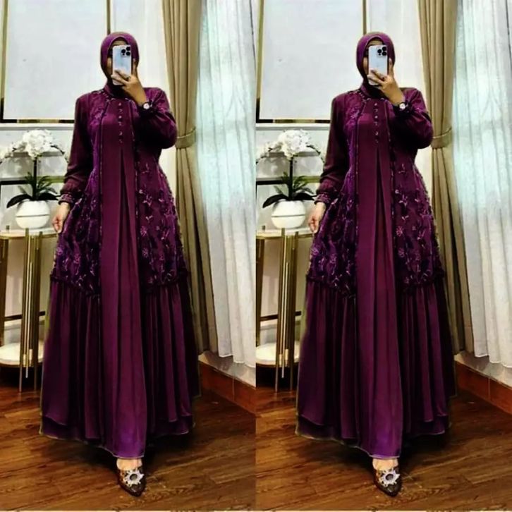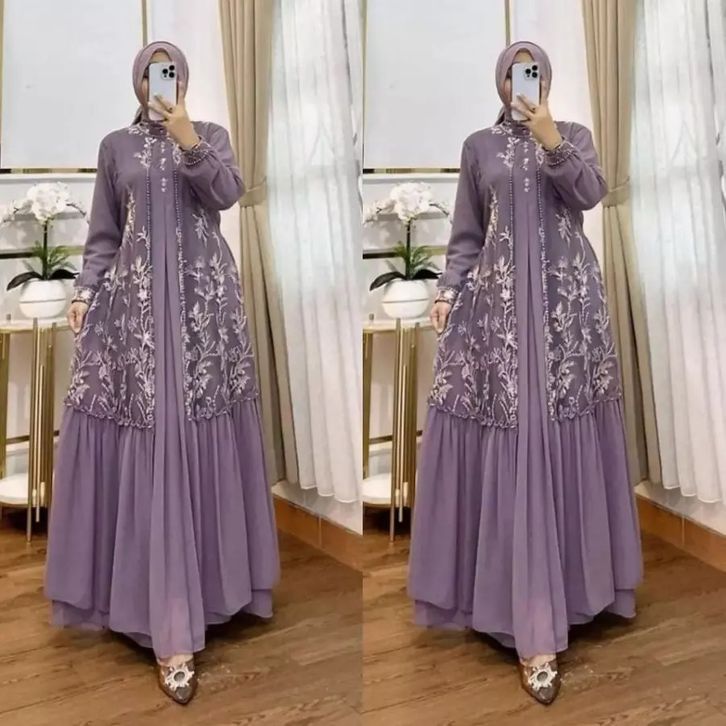 Alluna Dress Brukat Tulle Dress Wanita Kondangan Modern Dress Lebaran 2026 Gamis Muslim Dress Murah Gamis Syari