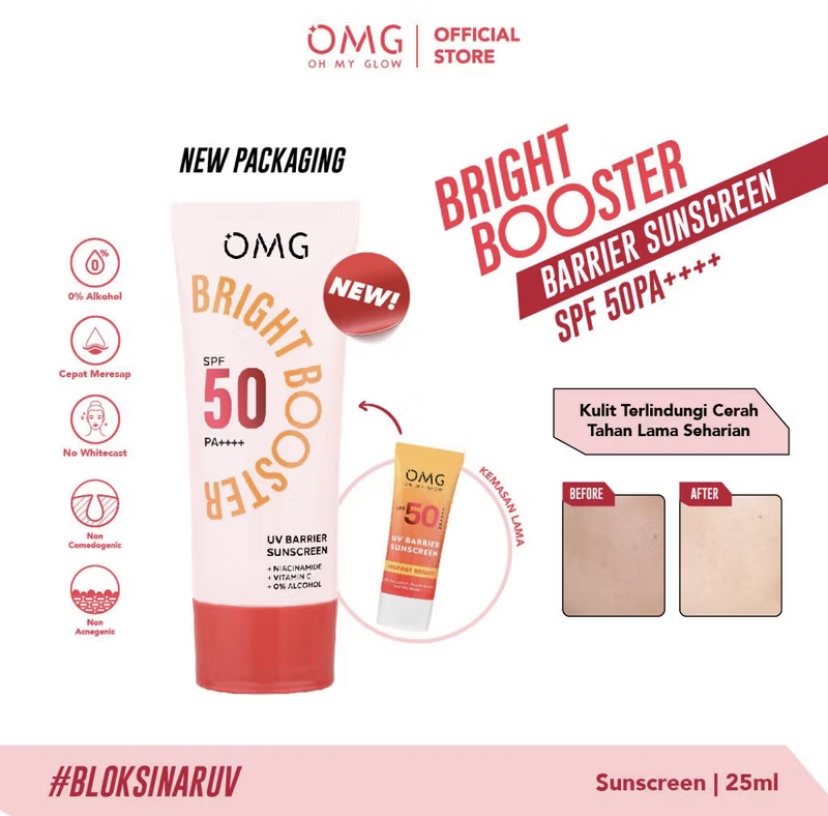 OMG Oh My Glow UV Barrier Sunscreen SPF 50 PA++++ / Sunblock Wajah 25ml / Instant Bright