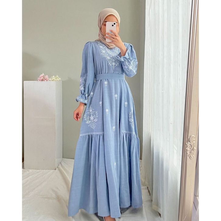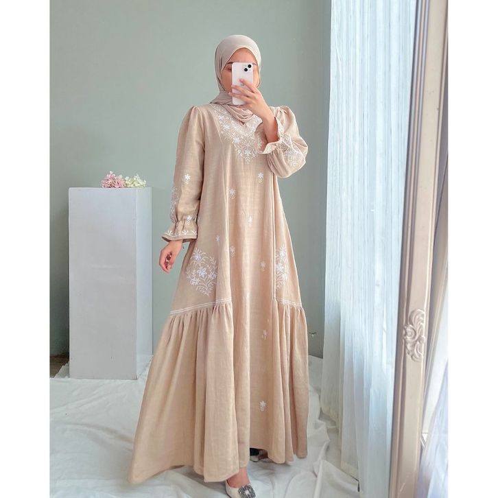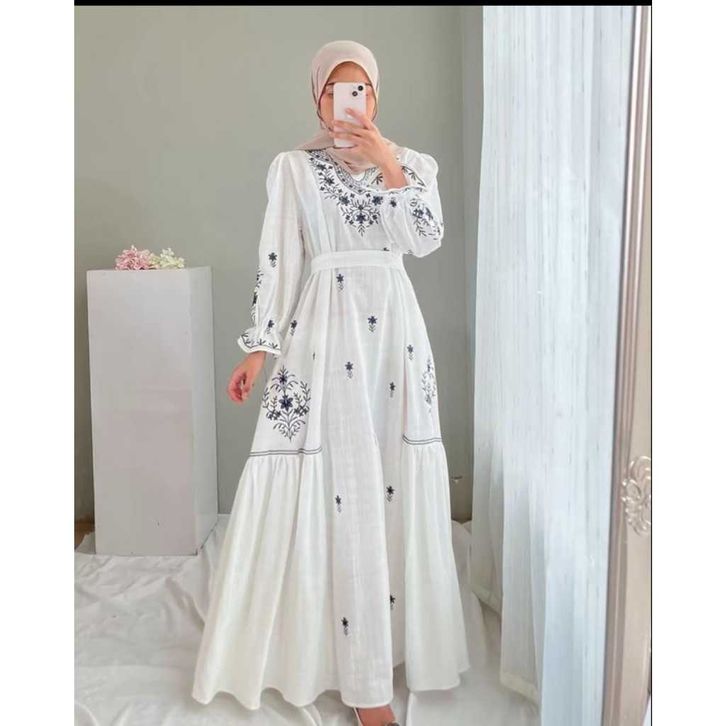 GAMIS WANITA ELEGANT MEWAH TERBARU MAXY BO BAHAN LINEN PREMIUM BORDIR SIZE M L XL XXL DRESS KOREAN STYLE VINTAGE KEKINIA