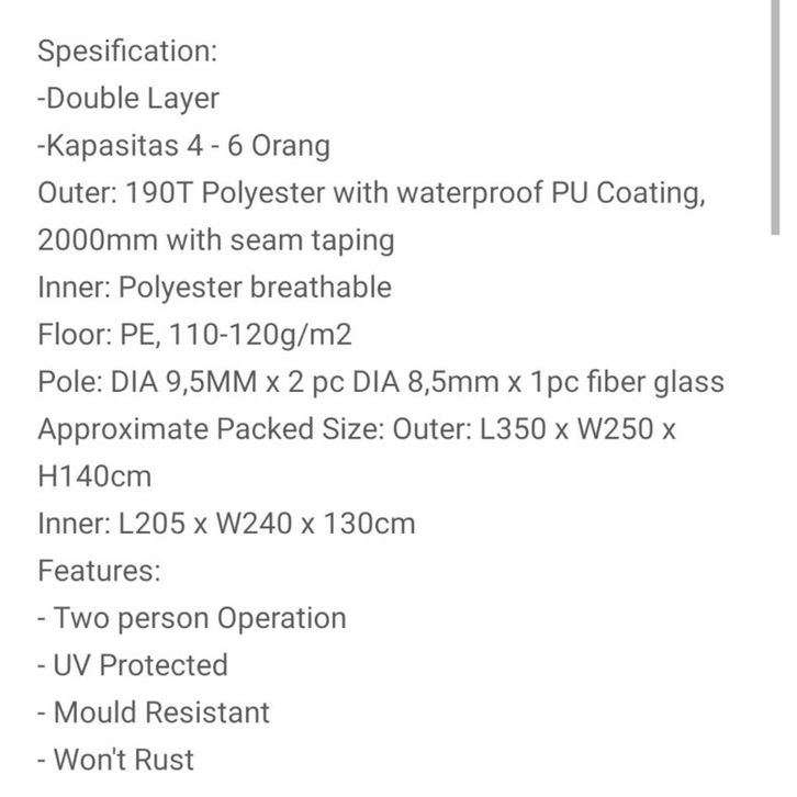 Tenda Camping Double Layer tenda camping AREI M29 double layer kap 6 orang REI original