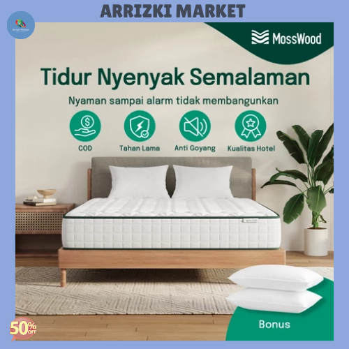 [Star] Kasur Spring bed Mosswood Springbed Hotel Premium 20cm Kasur Busa Pegas Anti Goyang Tahan Lama Bonus Bantal