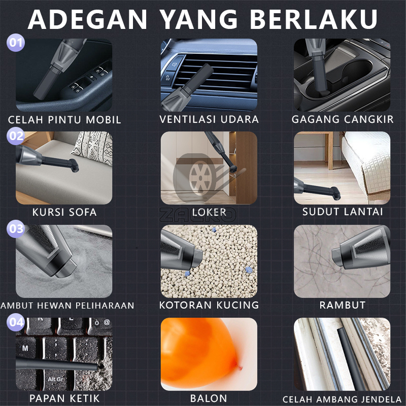 [Star] ZACRO Vacum Cleaner Portable Mobil 3in1 Mini Nirkabel Multifungsi