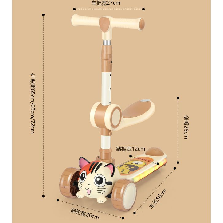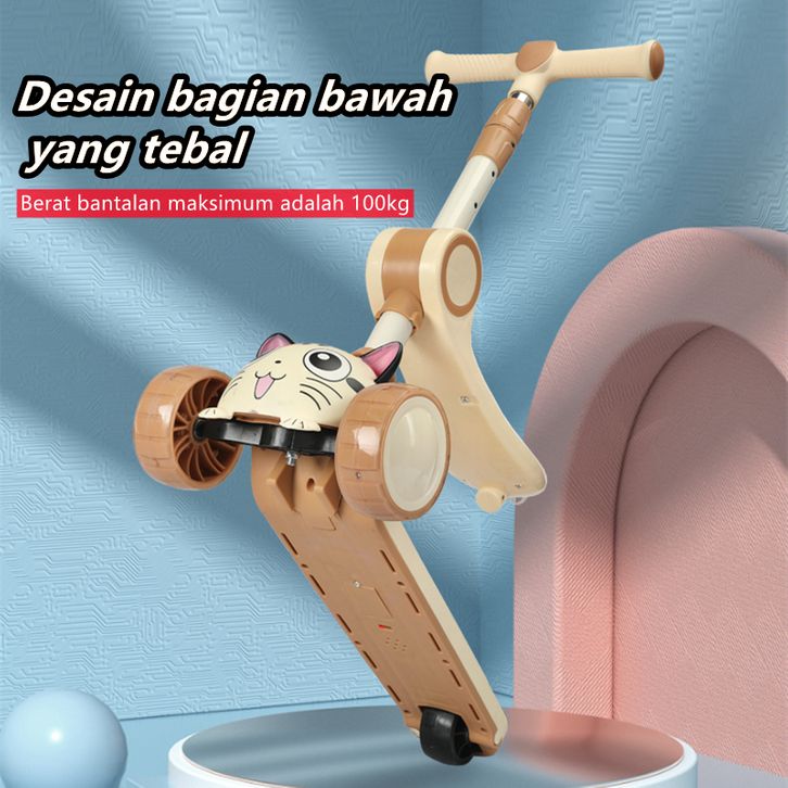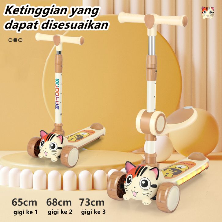 Skuter Anak-anak 3 Roda Skuter dengan Roda Flash Skuter Tendangan untuk Anak 2-12 Tahun Tinggi Disesuaikan Skuter Anak