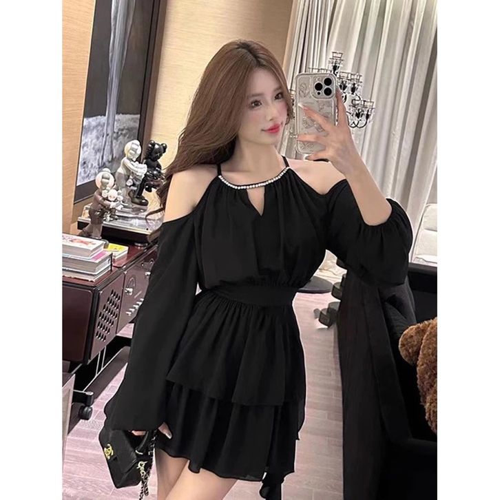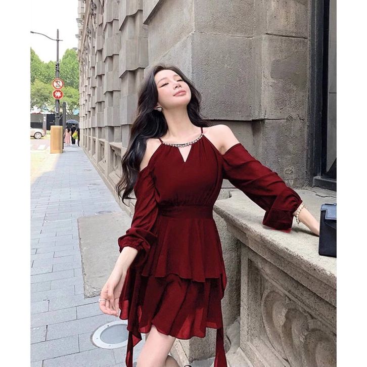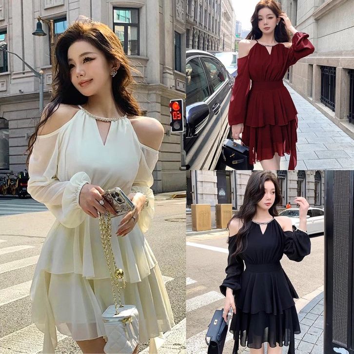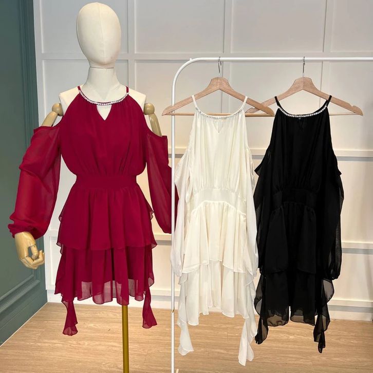 MINI DRESS WANITA KOREAN STYLE DRESS PESTA MEWAH ELEGAN KONDANGAN DRESS NATAL SIMPLE POLOS D1461