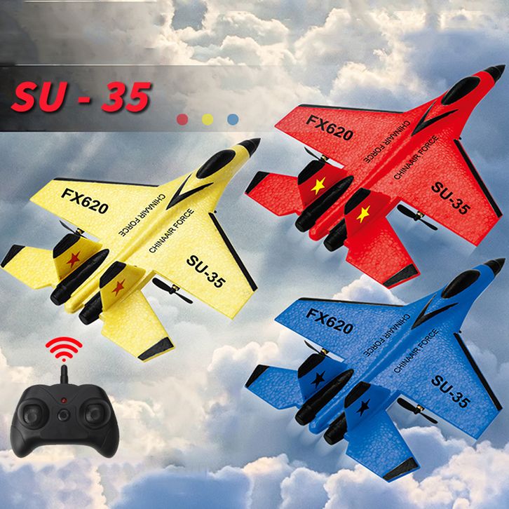 SU35 Pesawat RC 2.4G dengan Lampu LED Remote Control Fighter Model Terbang Pesawat Glider EPP Mainan Busa untuk Hadiah