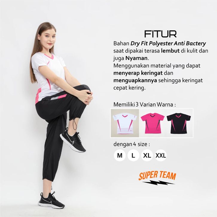 Baju Atasan Wanita Lengan Pendek Jersey Olahraga Wanita S1 Bahan Polyester Baju Lari Senam Voli Bulutangkis Sepeda