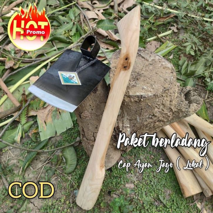1 set - Cangkul ayam jago dan doran/gagang cangkul kayu jati asli