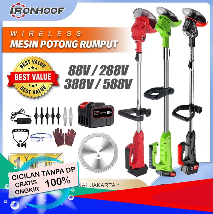 IRONHOOF Mesin potong rumput batrai Mesin pemotong rumput Mesin potong rumput listrik Pemotong