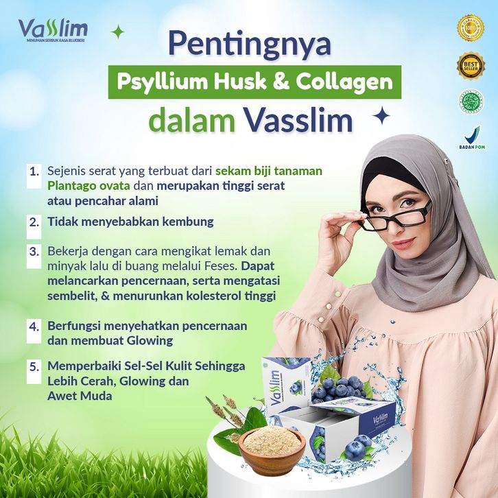 Vasslim Fiber Drink Diet Pelangsing Badan Perut Buncit Wanita Cepat dan Ampuh Herbal Bpom Original