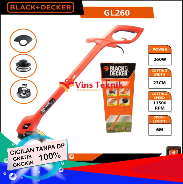 GL 260 Black Decker 250W String Trimmer Pemotong Rumput Senar GL260