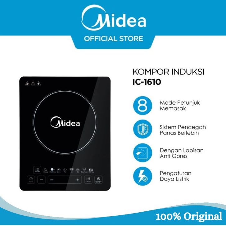 Kompor Induksi Midea IC-1610 Induction Cooker Listrik Hemat Desain Hitam Elegan & Mudah Dibersihkan
