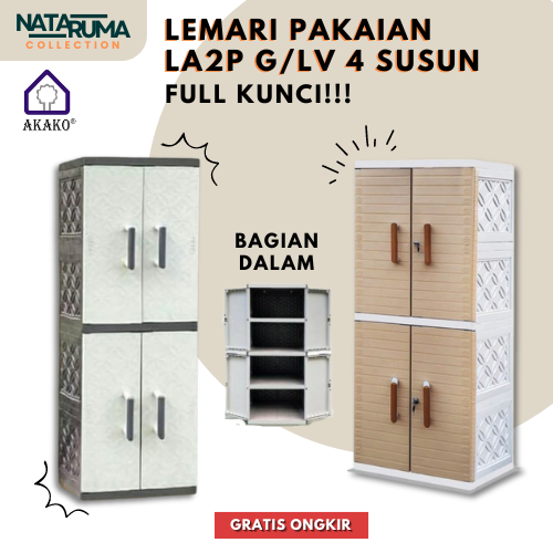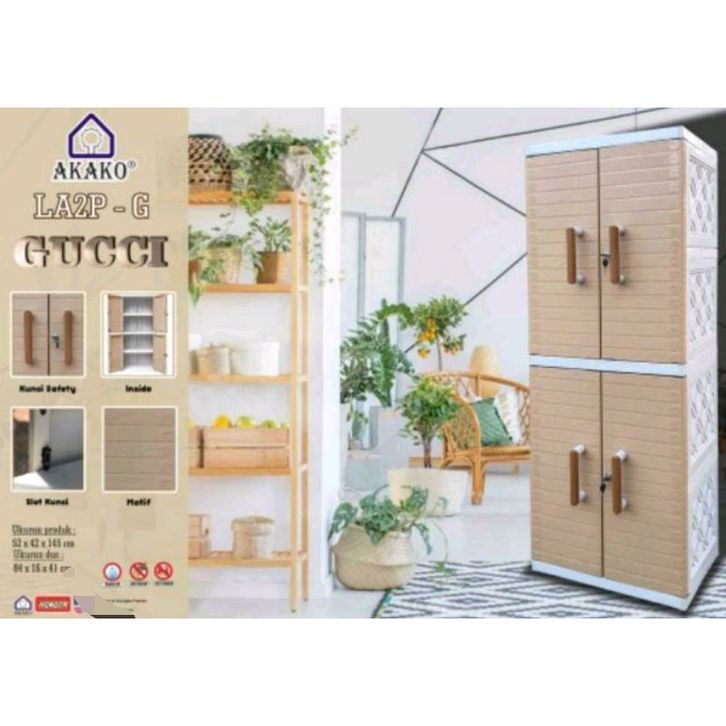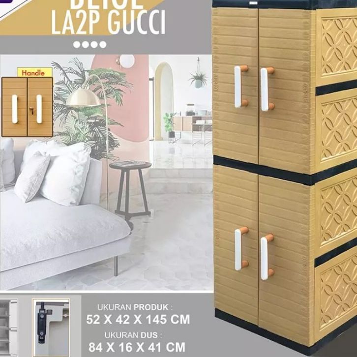 Akako - Lemari Pakaian Plastik LA2P Motif Gucci/LV 2 Pintu 4 Susun Serbaguna Anti Rayap Dan Jamur Termurah Ori
