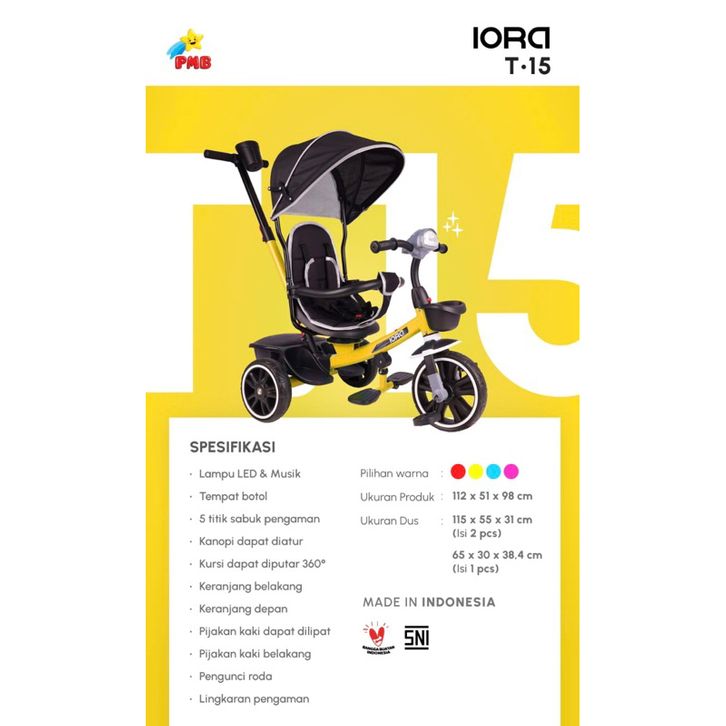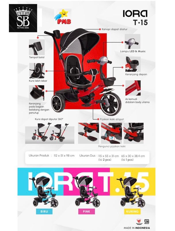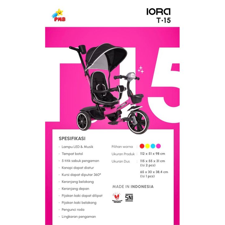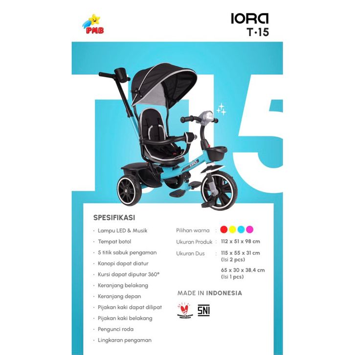 SEPEDA ANAK SEPEDA RODA TIGA PMB T15 T17 IORA T-17 T-15 BABY TRICYCLE DORONG MUSIK LAMPU MURAH
