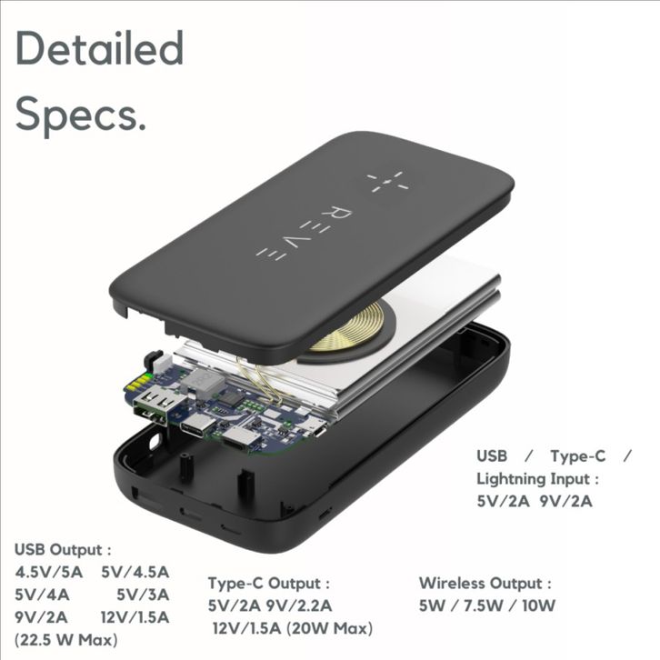Reve 10000mAh Fast 10W Wireless Powerbank 22.5W Output, QC4.0 + 20W PD