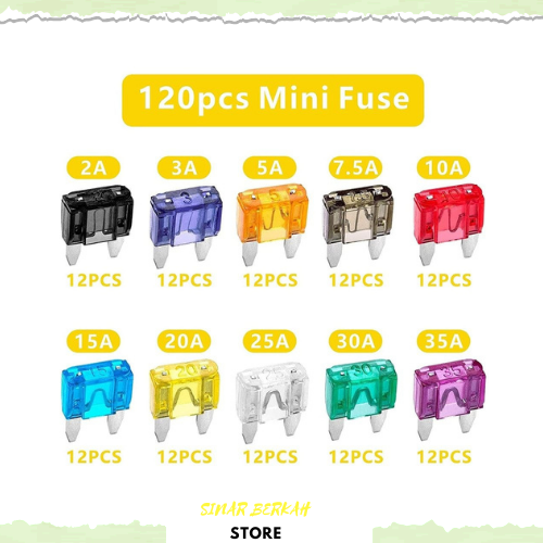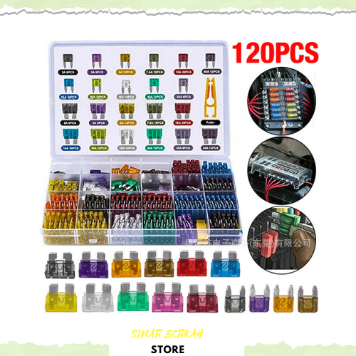 120 Set Sekring Mobil Motor Auto Blade Type Car Fuses Universal Besar Kecil Medium Micro 2 A, 3 A, 5 A, 7.5 A, 10 A,