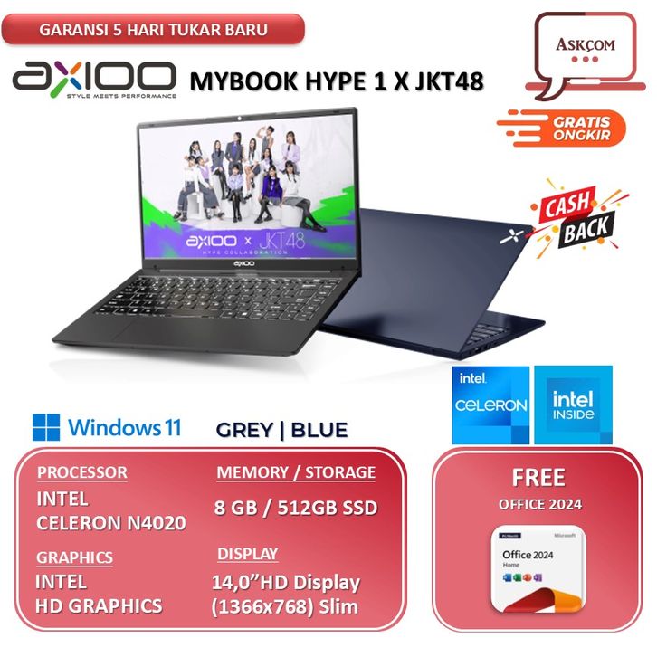Laptop Axioo Hype 1 intel Celeron N4020 8GB RAM 512GB SSD 14.0"HD Windows 11 x64+Office