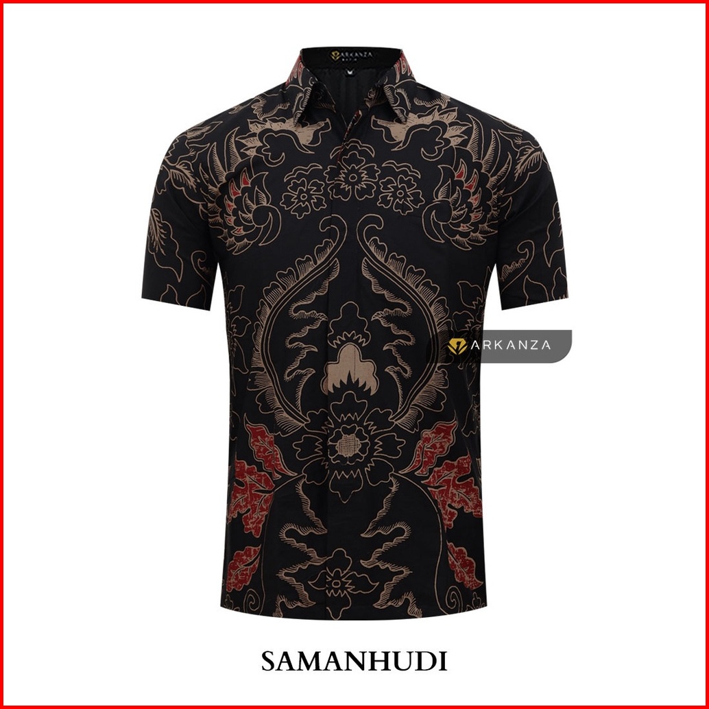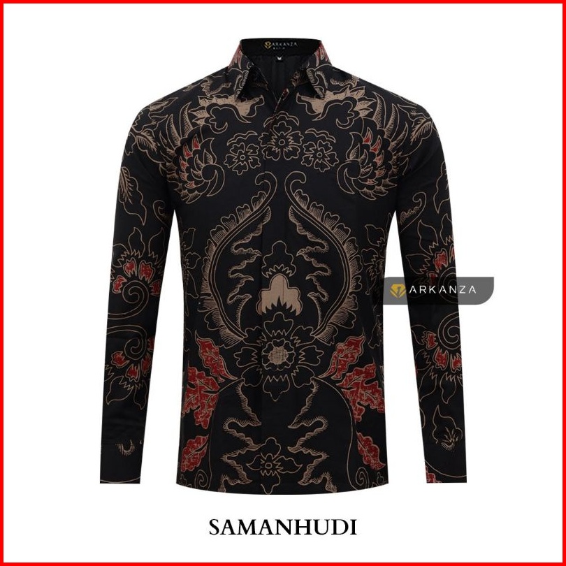 Batik Arkanza Motif Samanhudi Hem Atasan Kemeja Baju Batik Pria Cowok Laki Laki Slimfit Full Lapis Furing Lengan Panjang