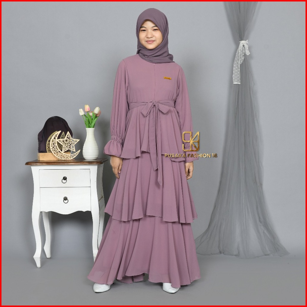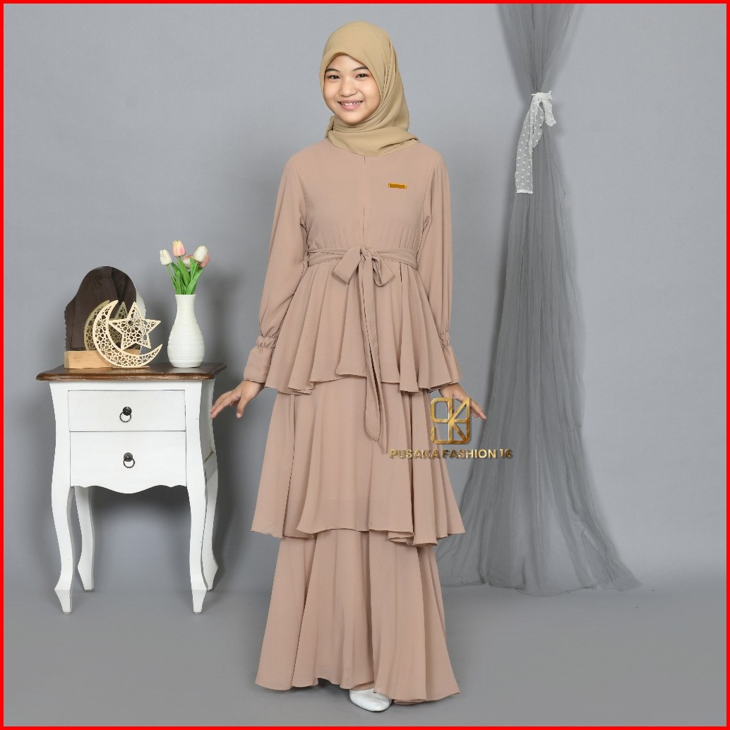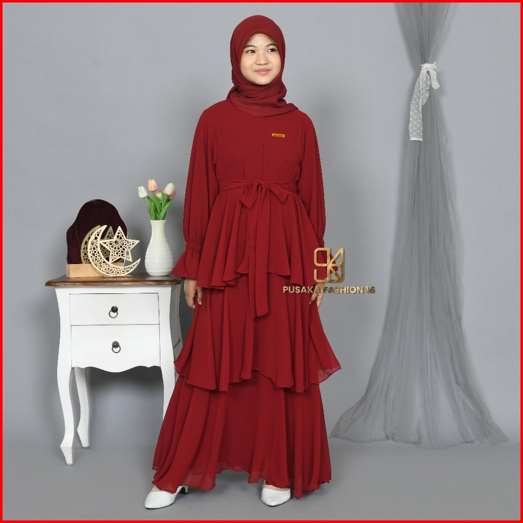 Els4 Gamis Party Ceruty Anak Perempuan Remaja Tanggung Usia 8 - 17 Long Dress Muslim Pesta Kekinian