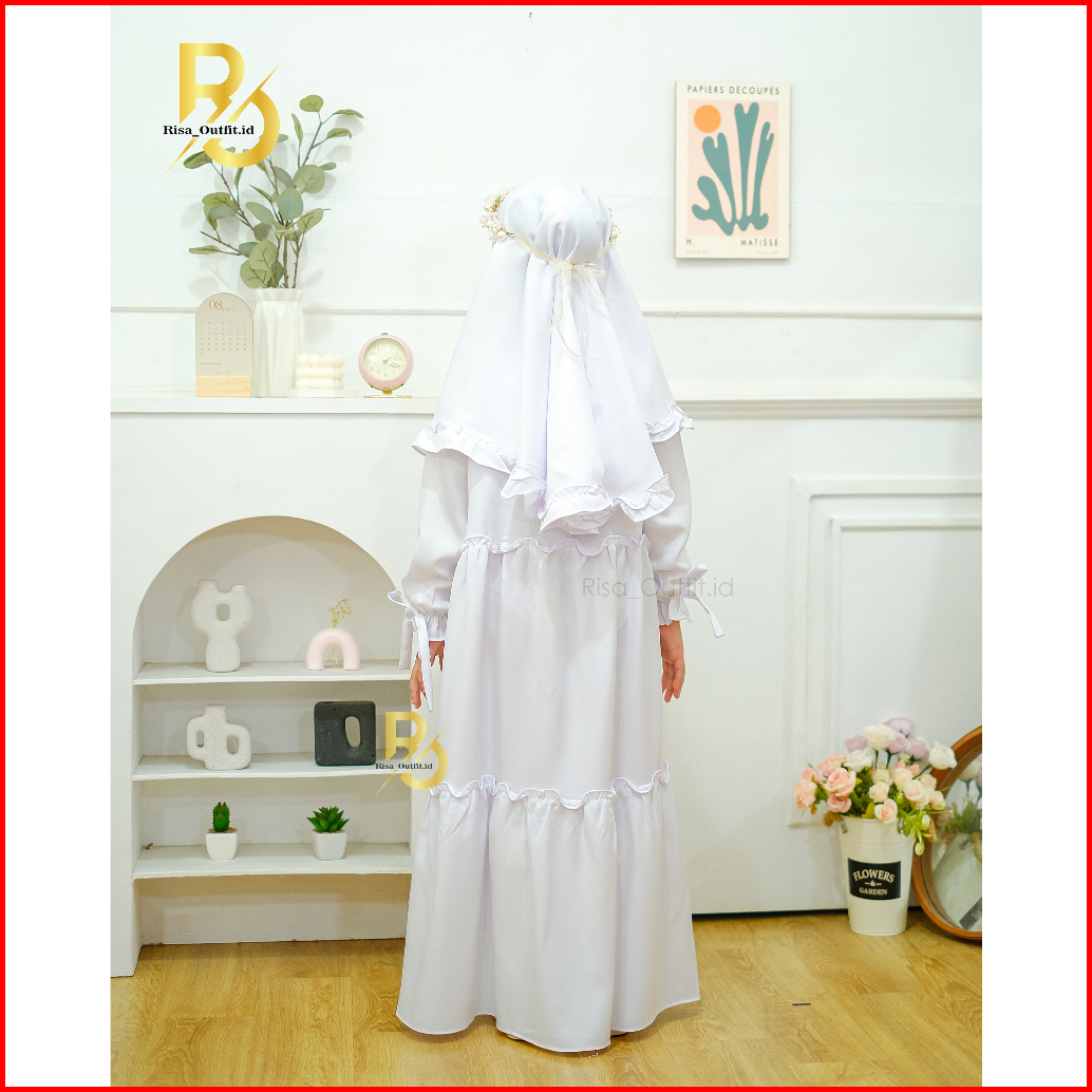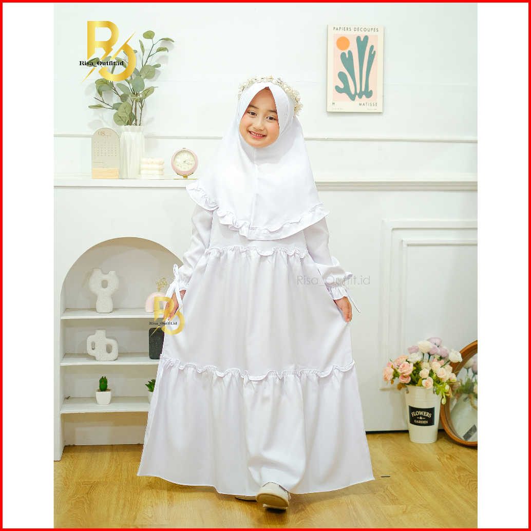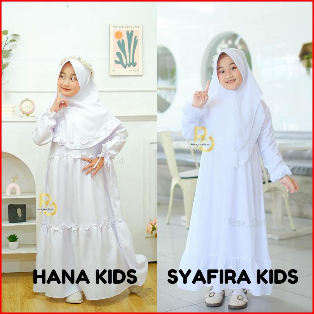 Gamis Muslim Anak Perempuan - Gamis Putih Manasik Haji - Gamis Anak Warna Putih - Gamis Anak Set Jilbab - Hana Kids Set