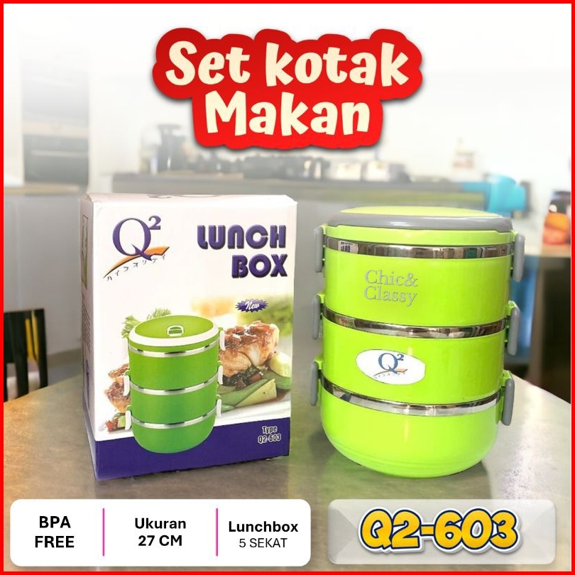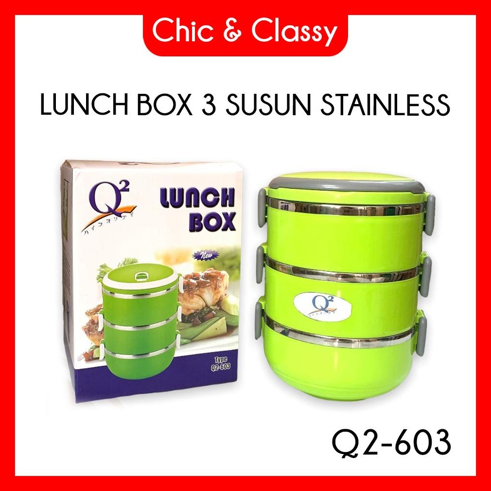 Q2-603 Lunch Box Rantang 3 Susun Stainless Steel Kotak Bekal Makan Q2 603