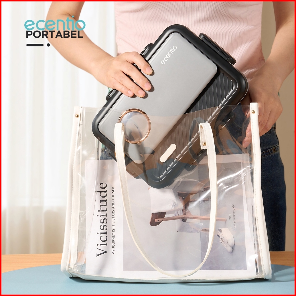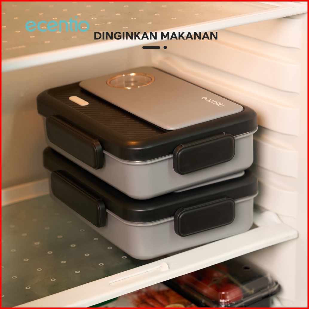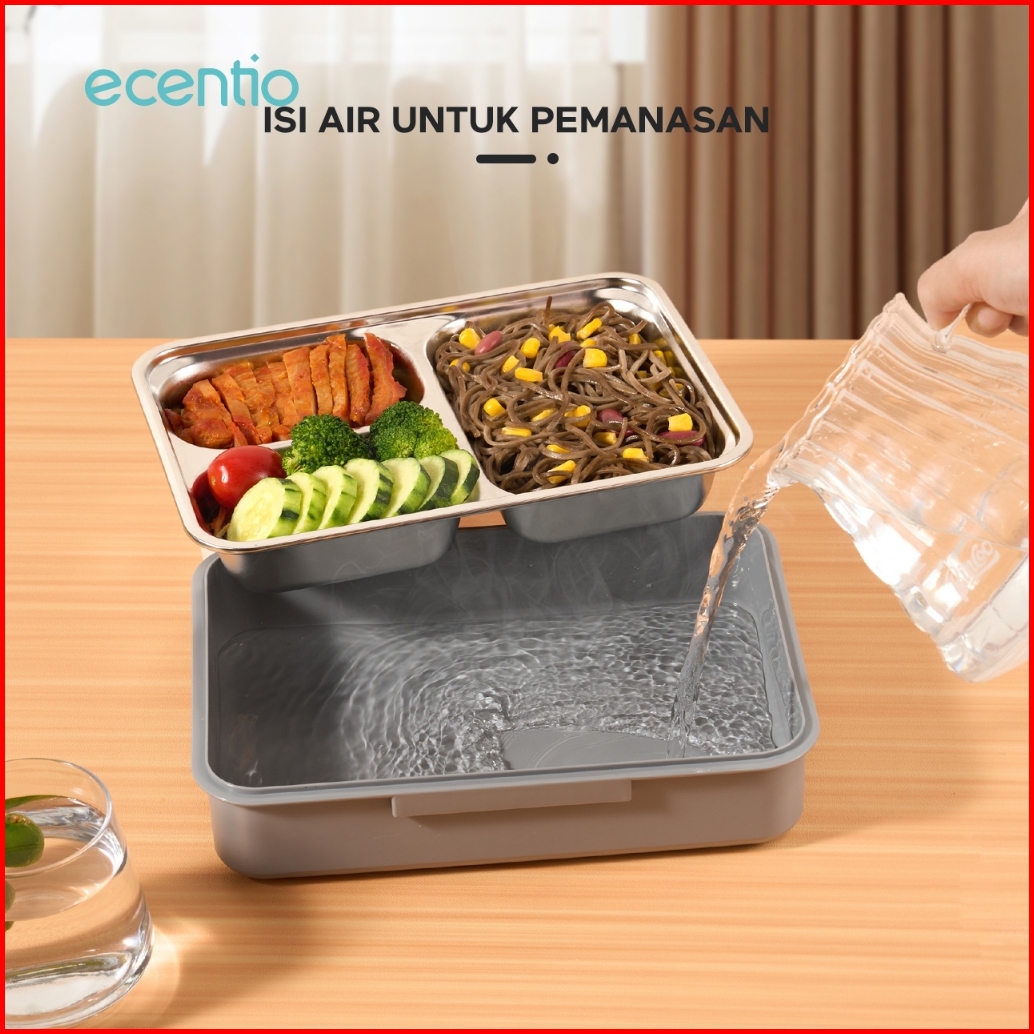 1.0 Anti Tumpahecentio Tempat Makan Stainless 3 Sekat 950ml Kotak Bekal Lunch Box Tahan Panas Anti Bocor Hitam Abu-abu