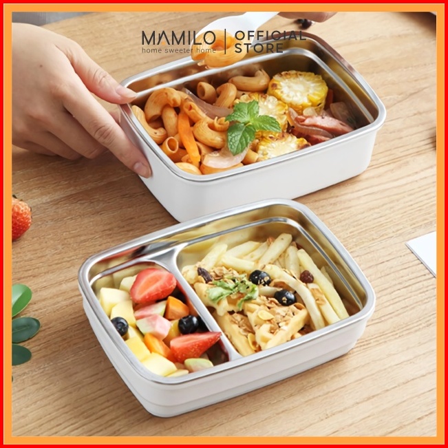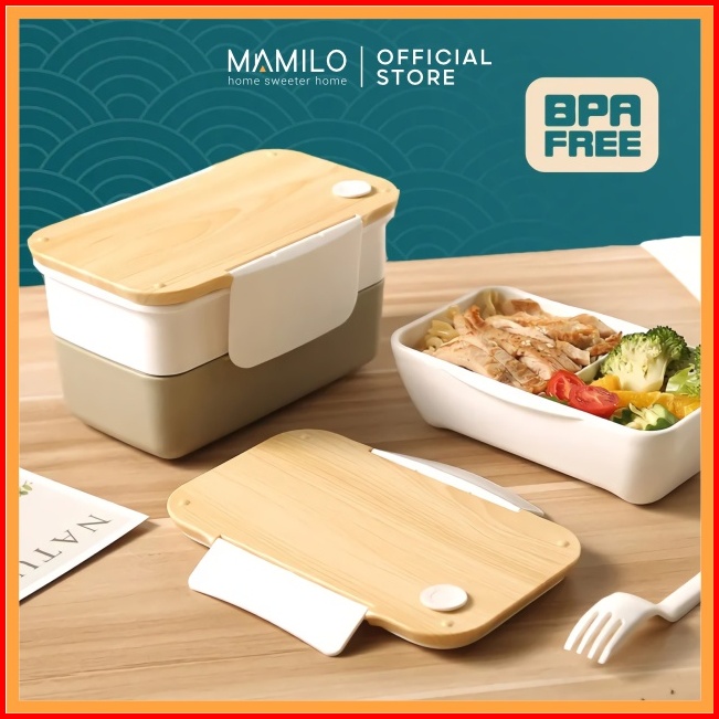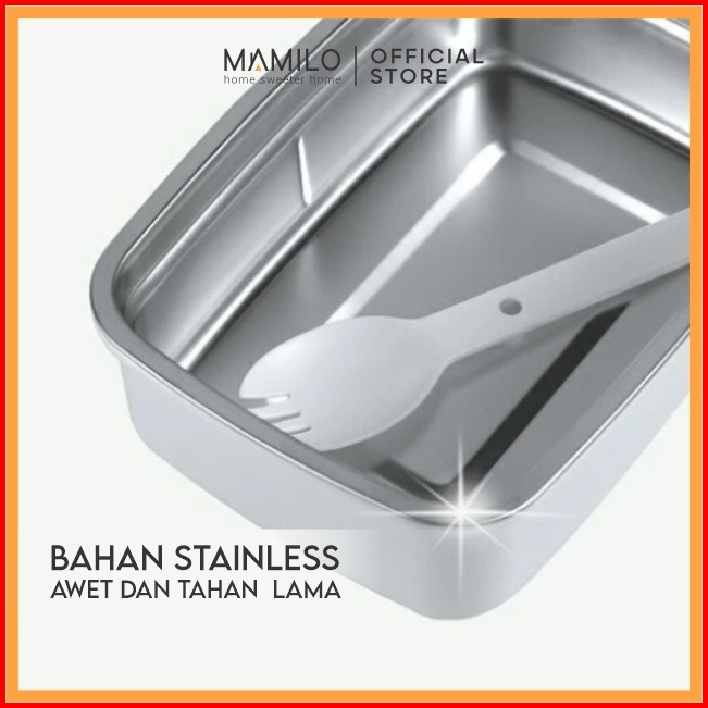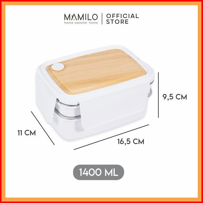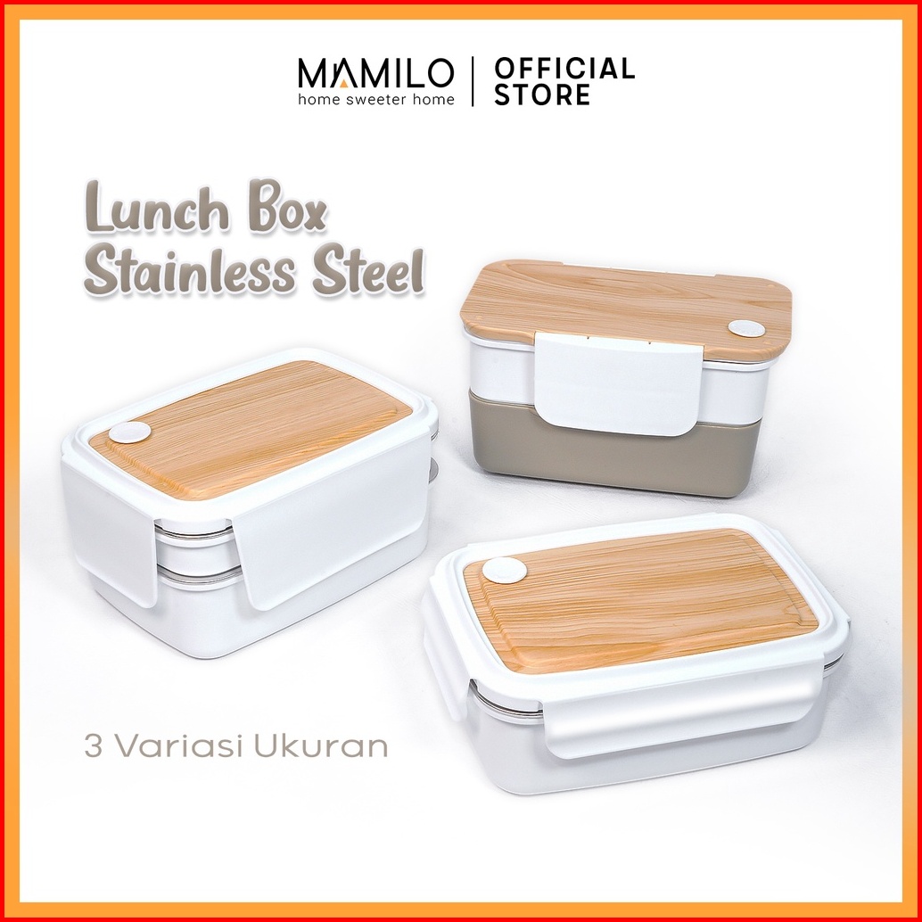 Mamilo Lunch Box Stainless Steel Kotak Makan Tutup Motif Kayu