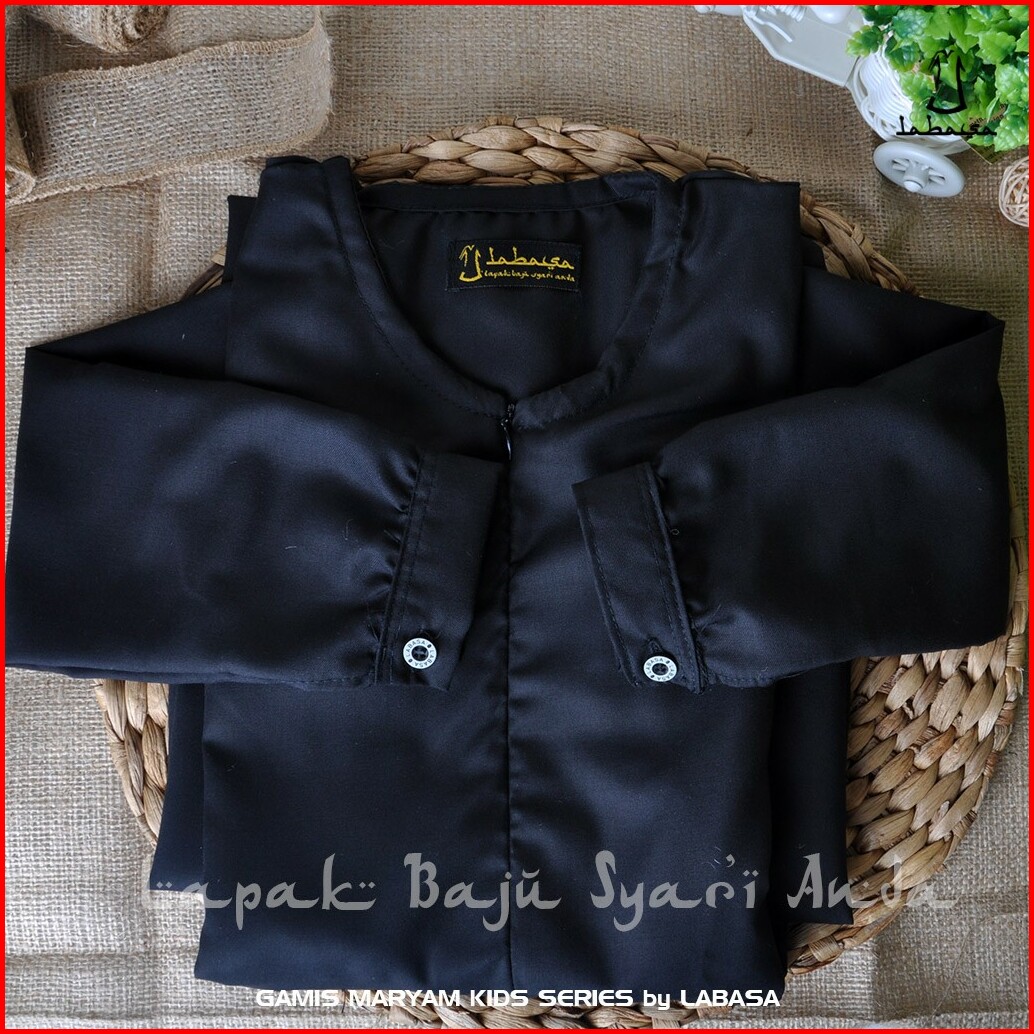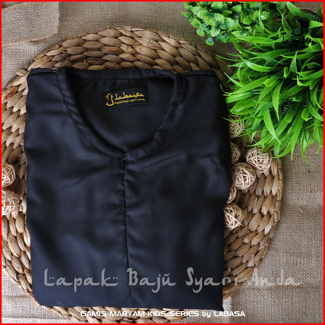 Gamis Anak Perempuan Hitam Polos Syari Toyobo Usia 4 - 18 Tahun Labasa Ori