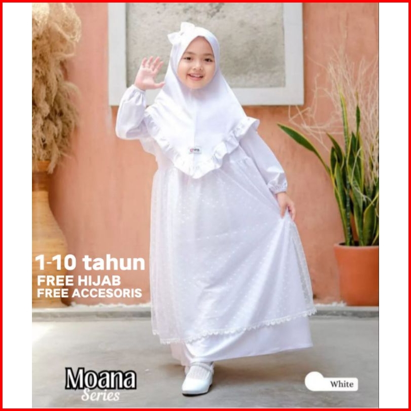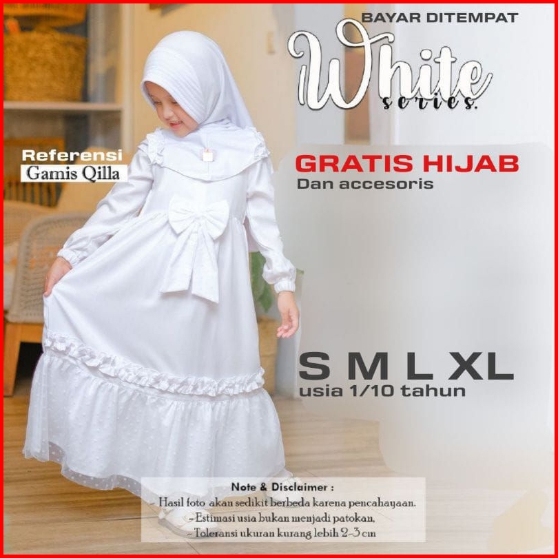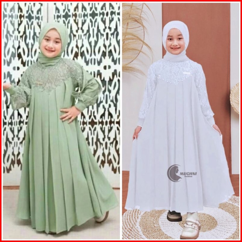 Inara Set Gamis Putih Anak Perempuan 1-13 Tahun Gamis Brukat Anak Baju Gamis Anak Perempuan Kondangan