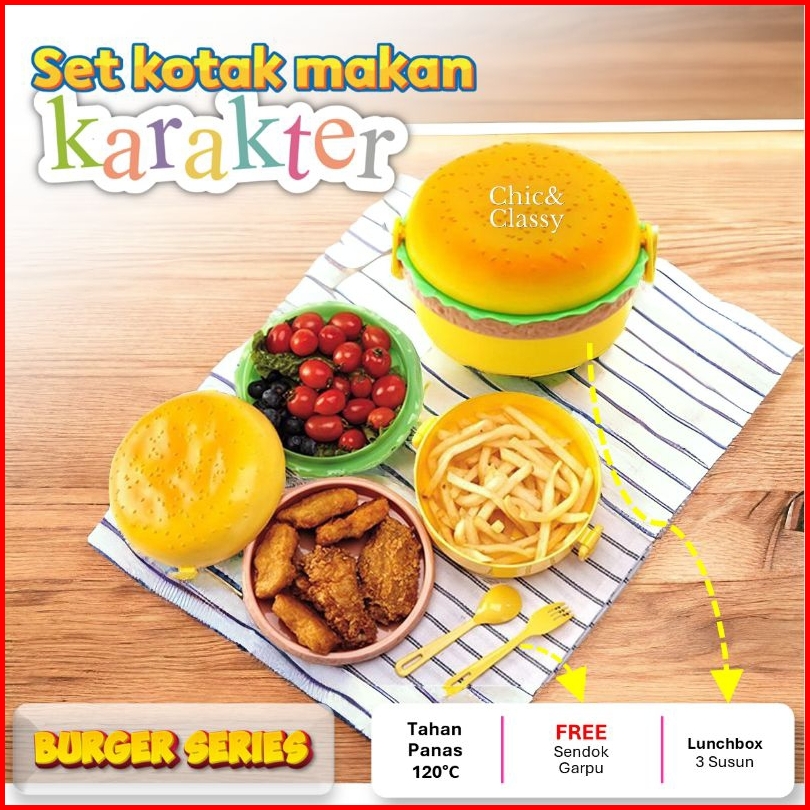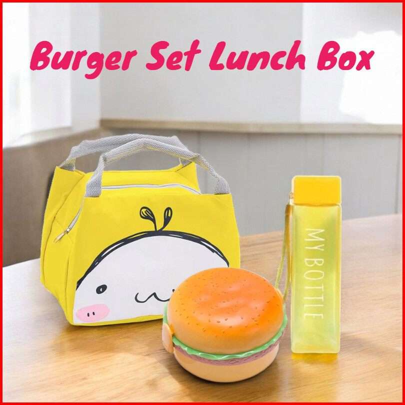 Burger Set Lunch Box Buger Hamburger Sendok Garpu Kotak Makan Anak Bekal Sekolah Tempat Makan