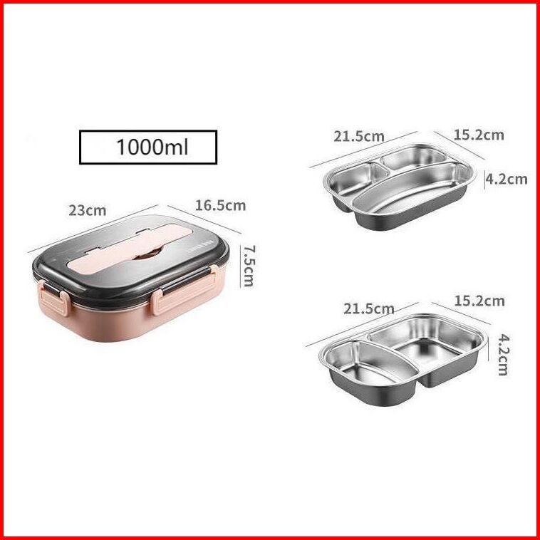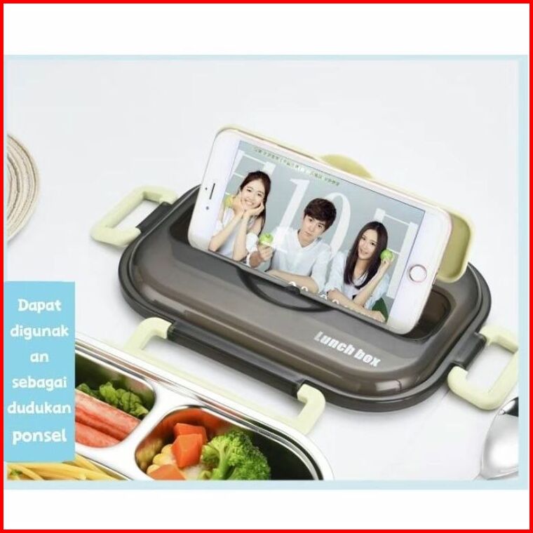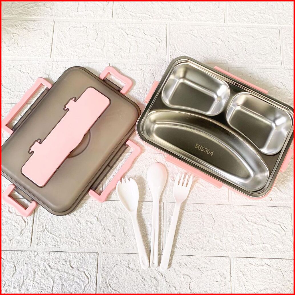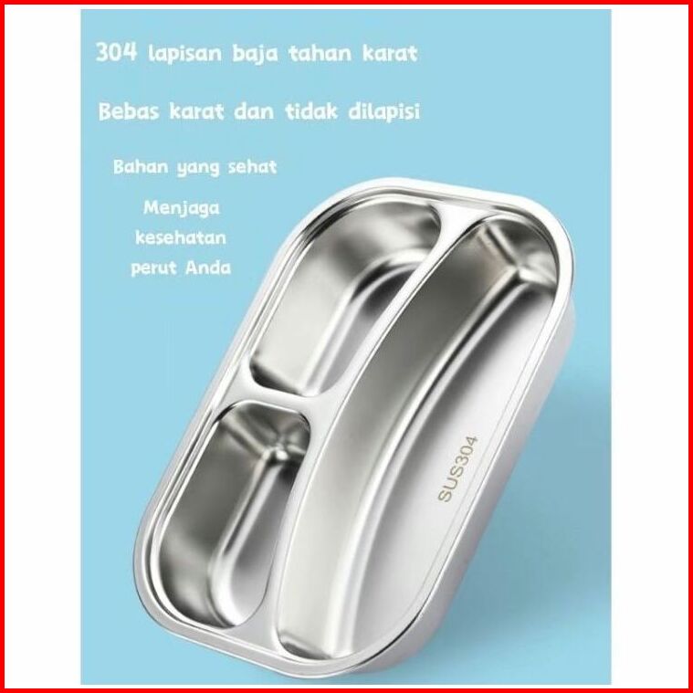 Kotak Makan Stainles Steel 304 - 3 Sekat - 3 Warna Tahan Suhu Tempat Makan Lunch Box Anti Karat