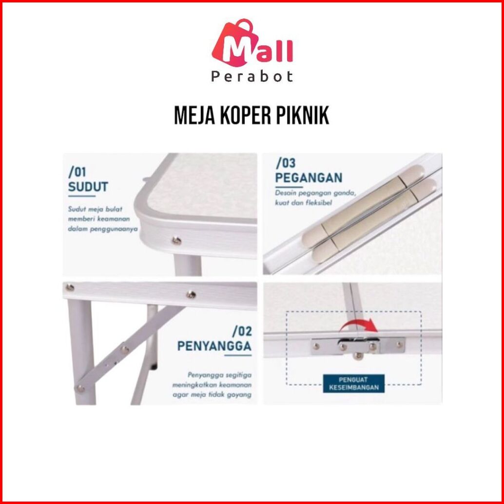 Mall Perabot Meja Lipat Square Koper Alumunium Meja Flipper Outdoor Piknik Portable 4 Kursi Meja Serbaguna Indoor Alumin