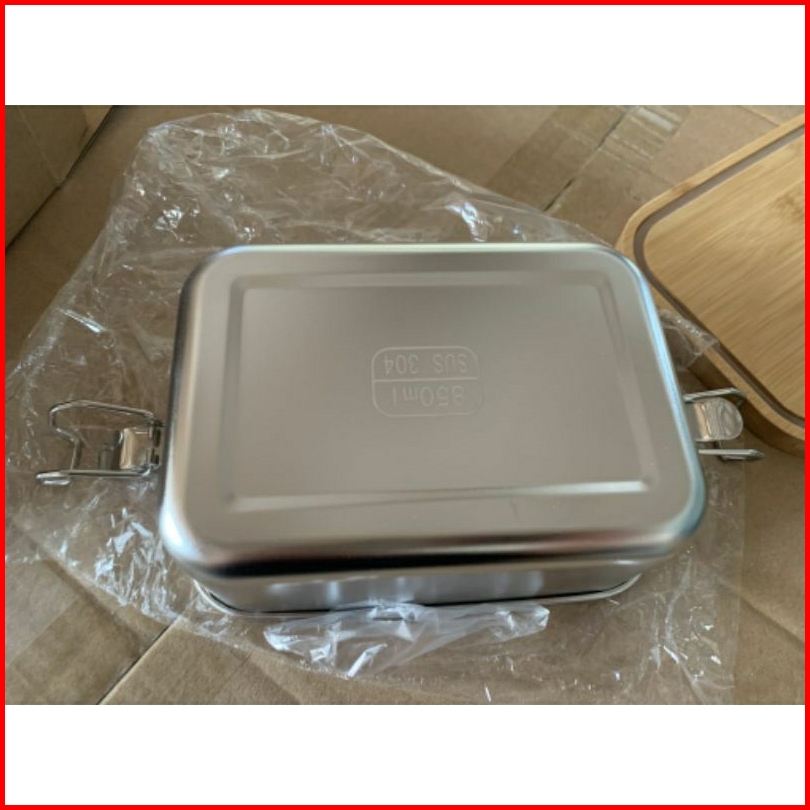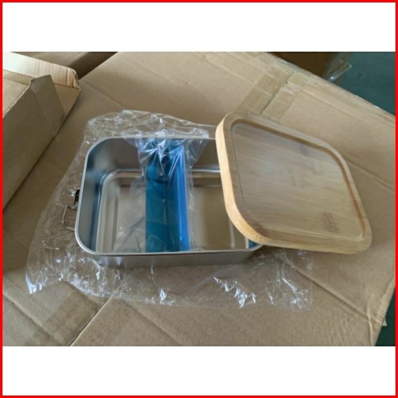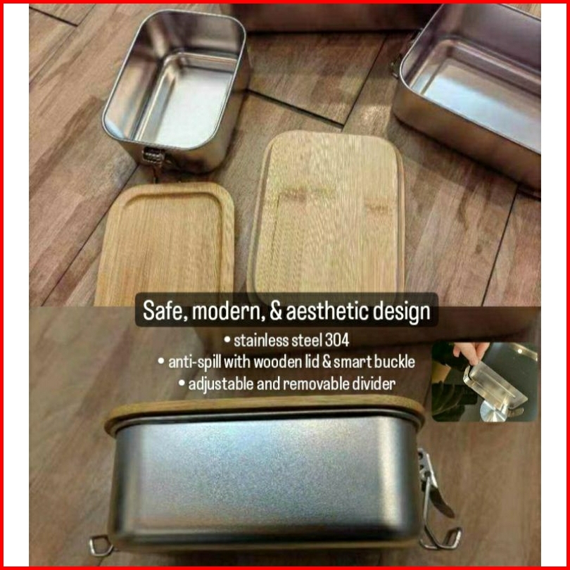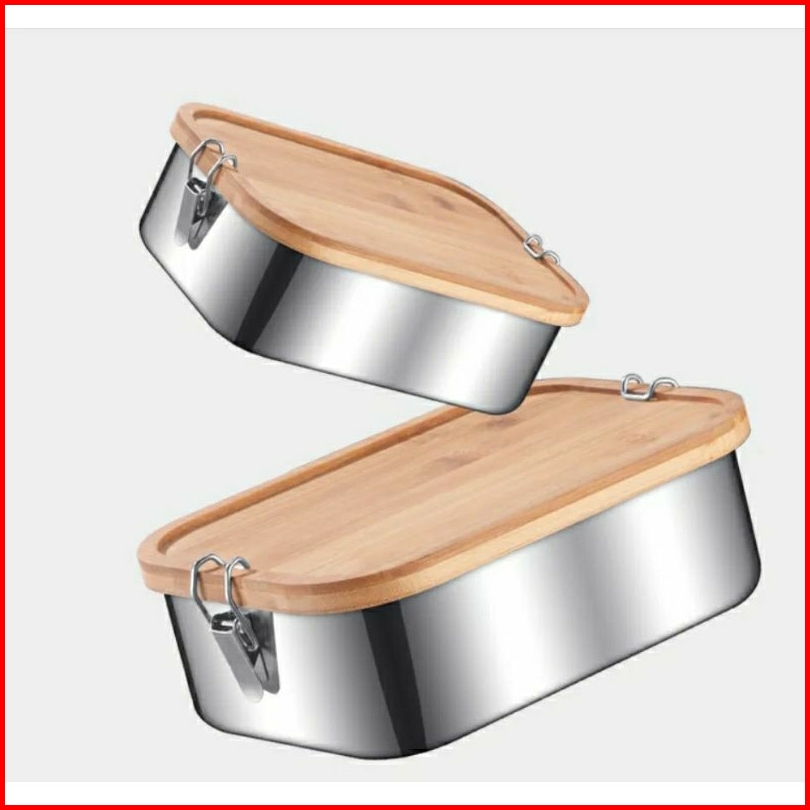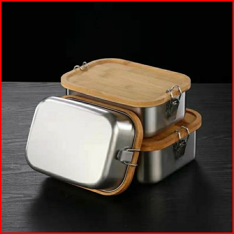 Lunch Box Stainless Steel 850 Ml Wooden Lid Bento Box Kotak Bekal Tempat Makan Stainless Steel Anti Tumpah Tutup Kayu Ku