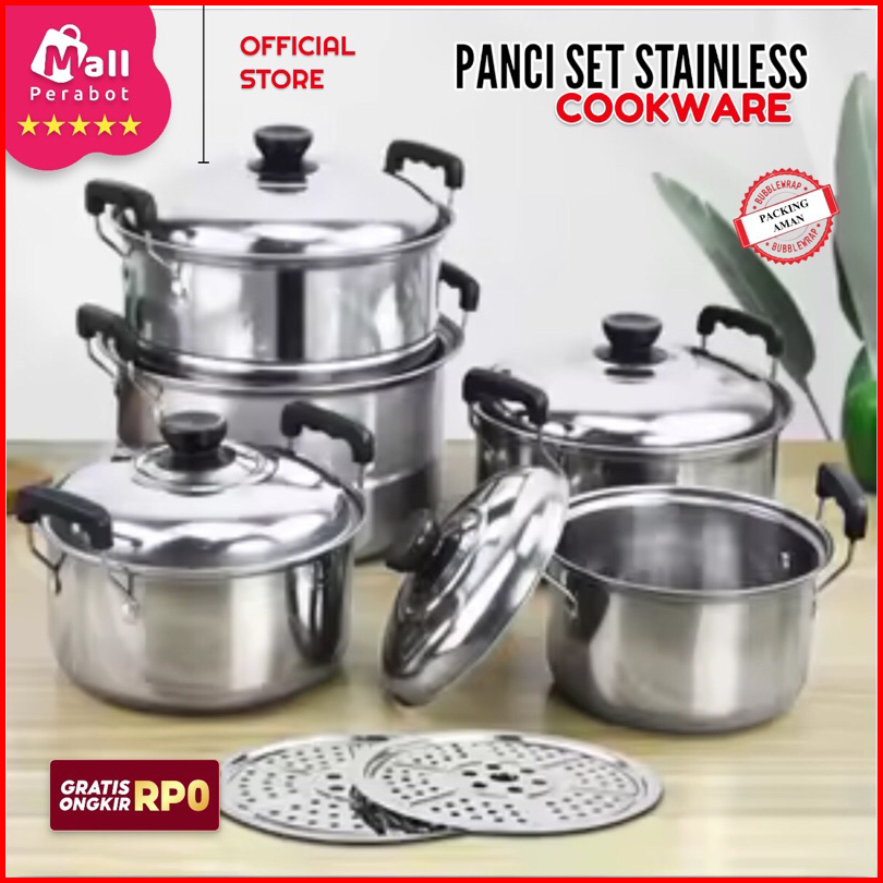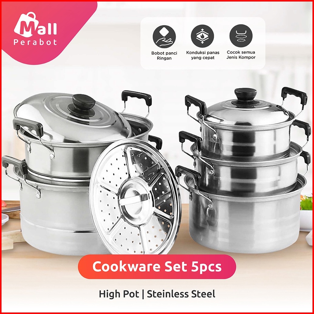 Mall Perabot Panci Set 5 Pcs Steamer Cookware Steam Stainless Tebal 5 Ukuran - Amerika