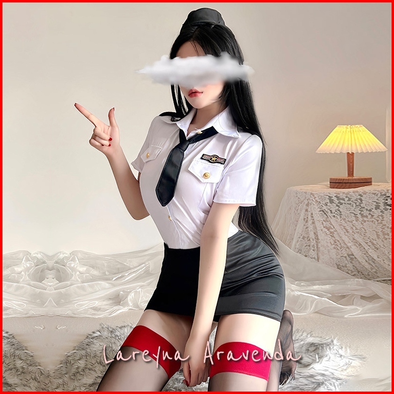 Lareyna Aravenda Set Lingerie Jumbo Fantasy Kostum Pilot Wanita Penerbangan Malam Lg624